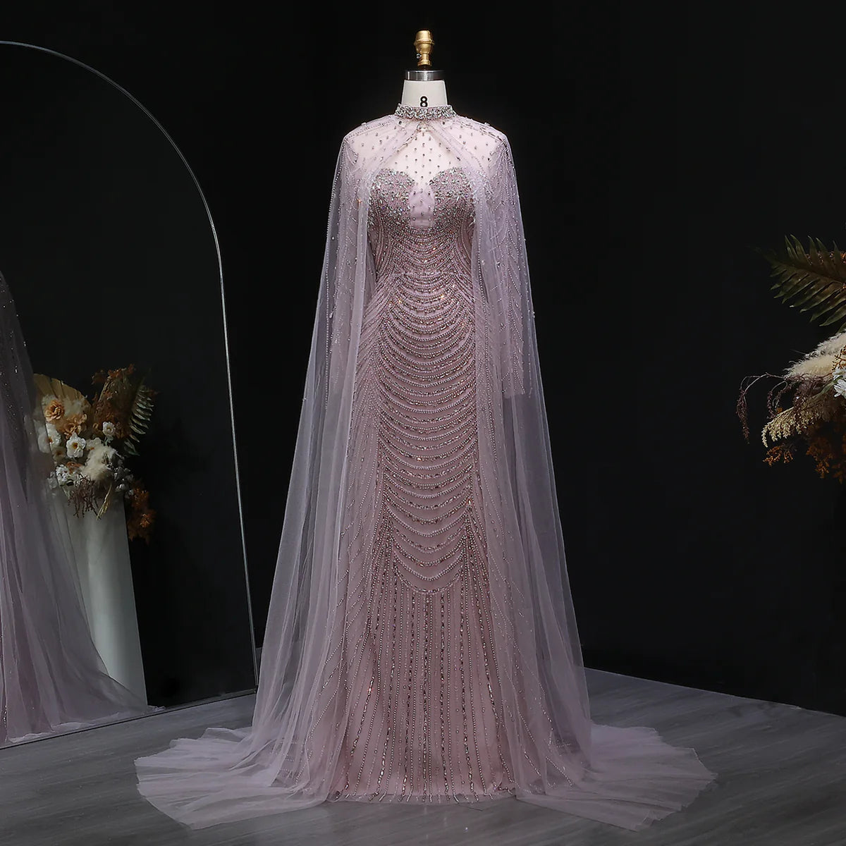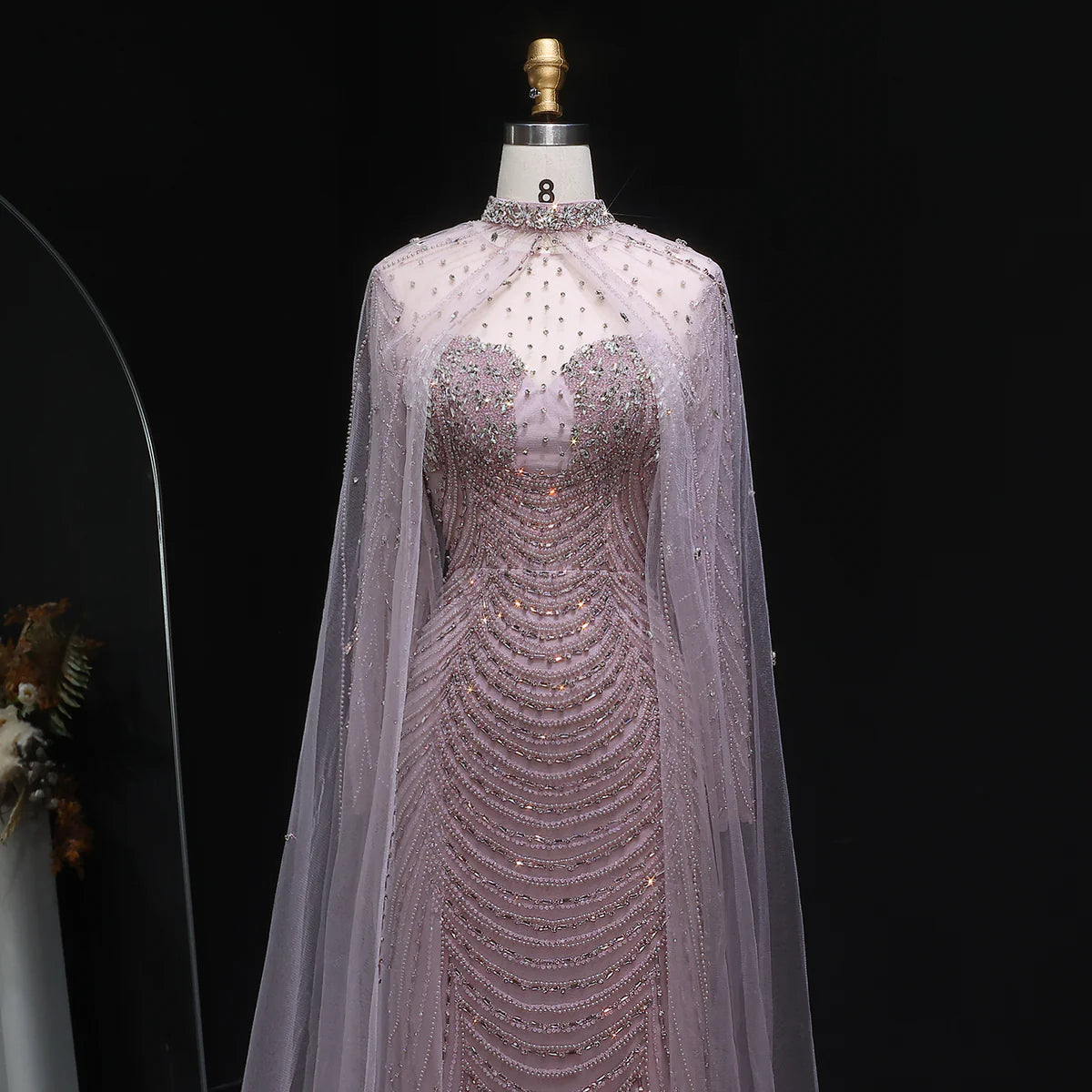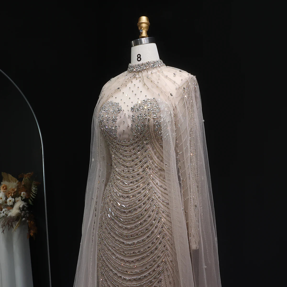 Luxury Off-Shoulder Beaded Gown with Transparent Cape SS165