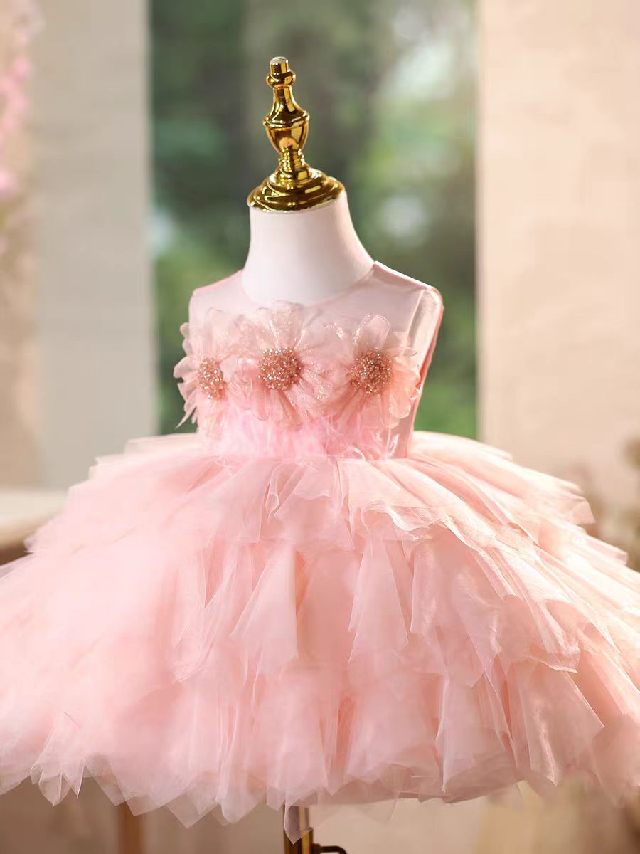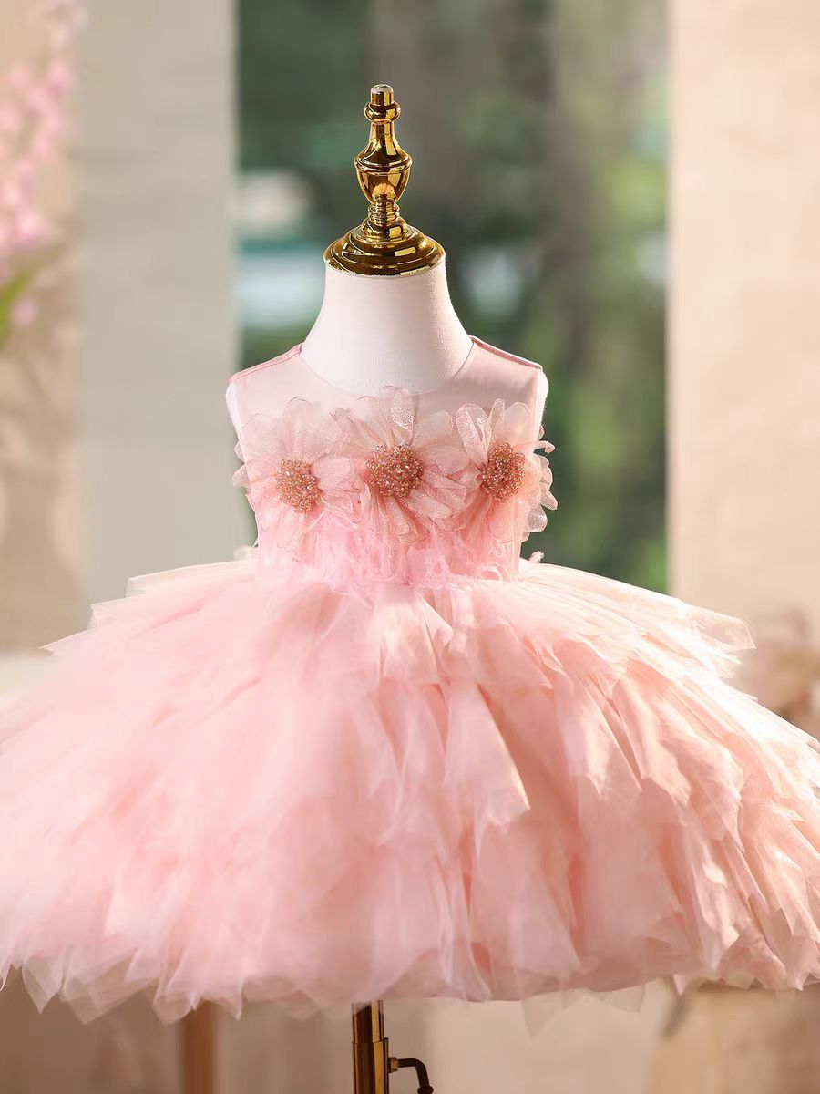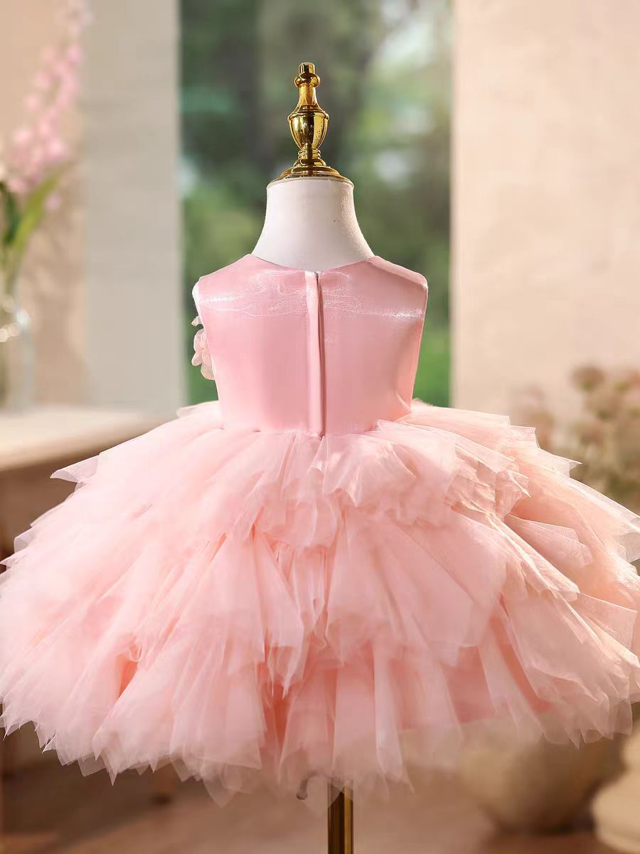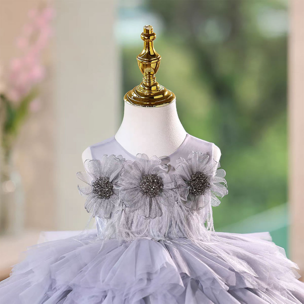 Gray Birthday Gown with Puffy Tulle Ruffles Flower Girl Dress J575