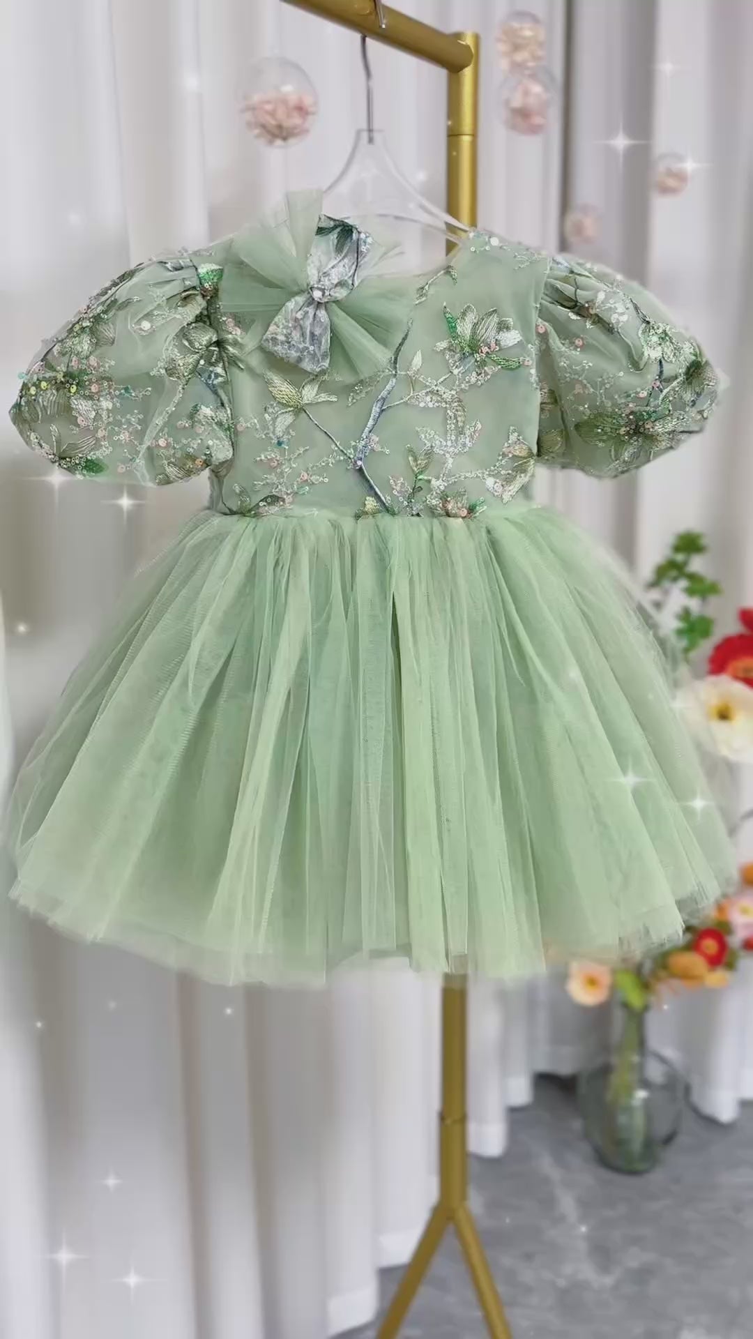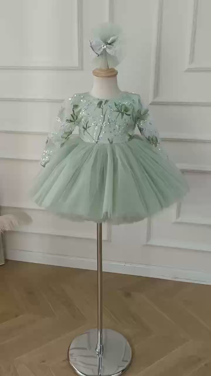 Sage Green Baby Long Sleeve Knee Length Girl Dress J060