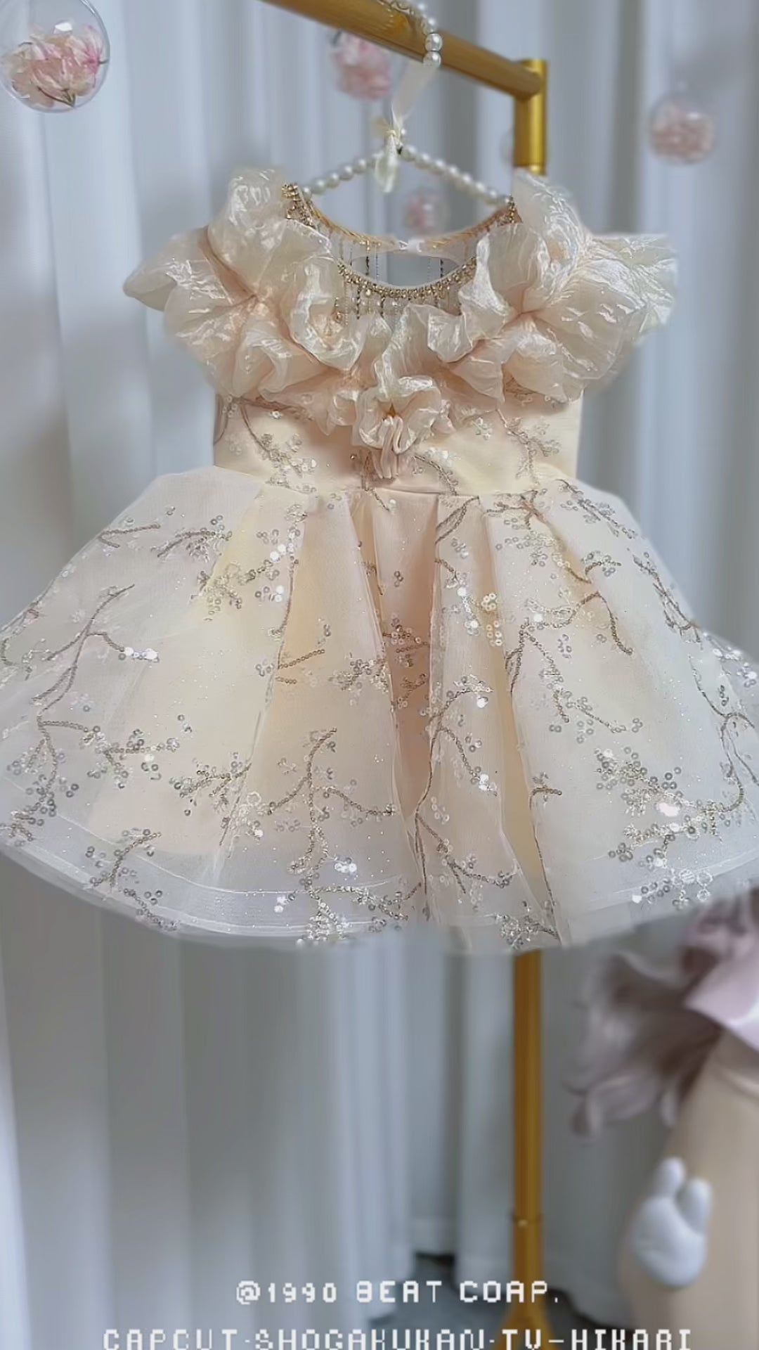 Luxury Arab Beige Girl Dress Dubai Kids Princess J202