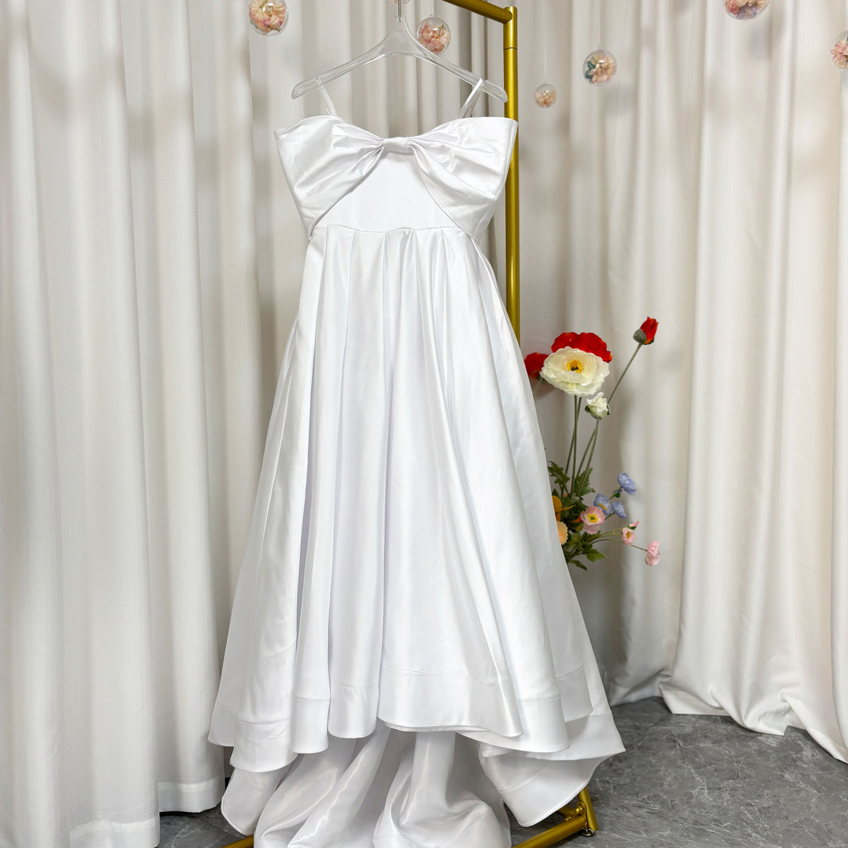 This DreamyVow Elegant White Satin Girl Dress is perfect for a first communion celebration. Made with high quality white satin, it features a beautiful design that will make any young girl feel like a princess. With its elegant and classy look, it will surely make a lasting impression.