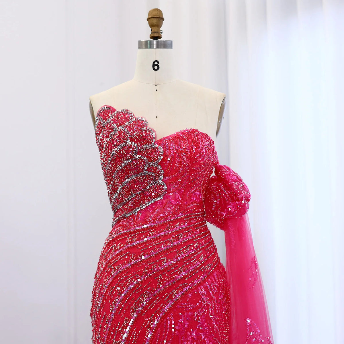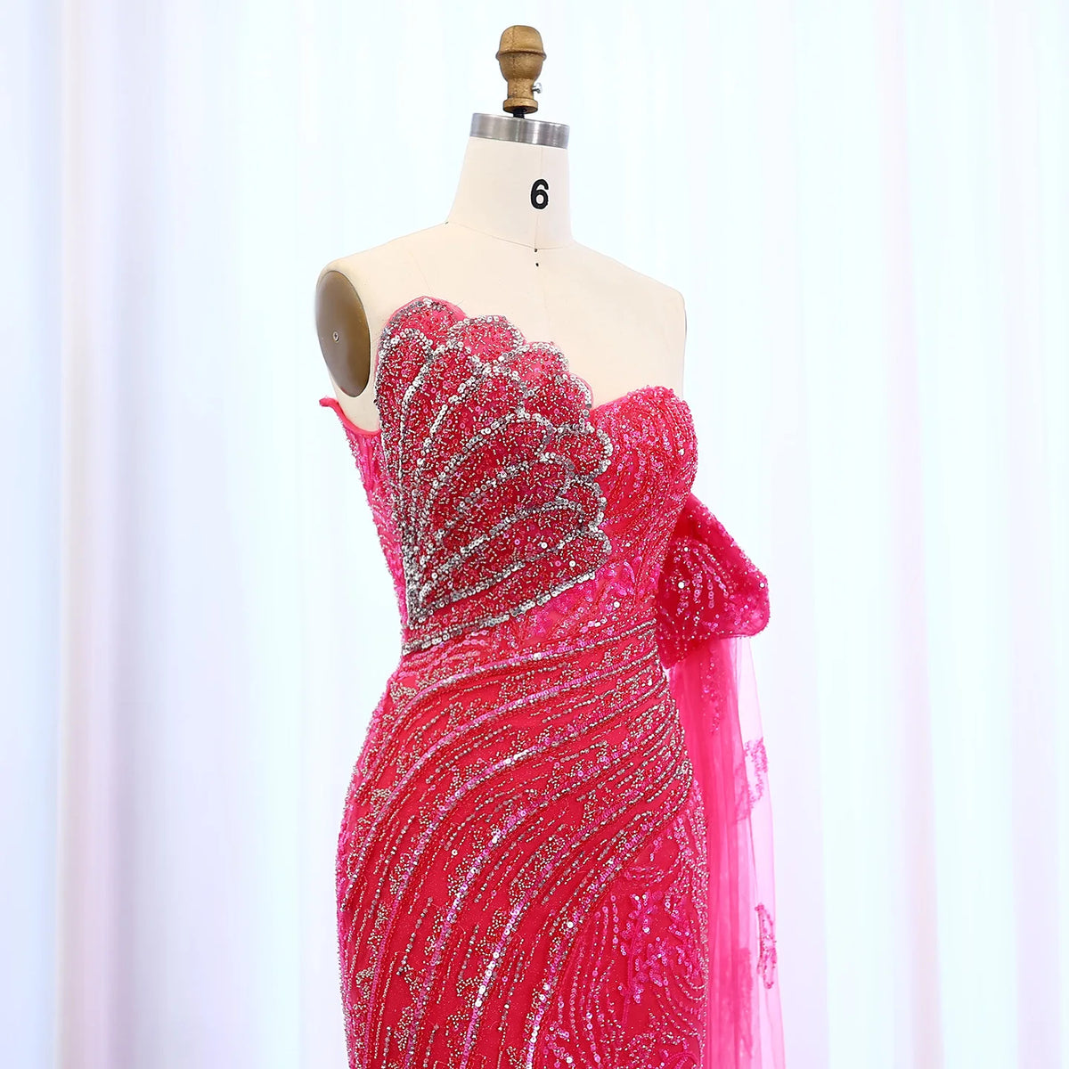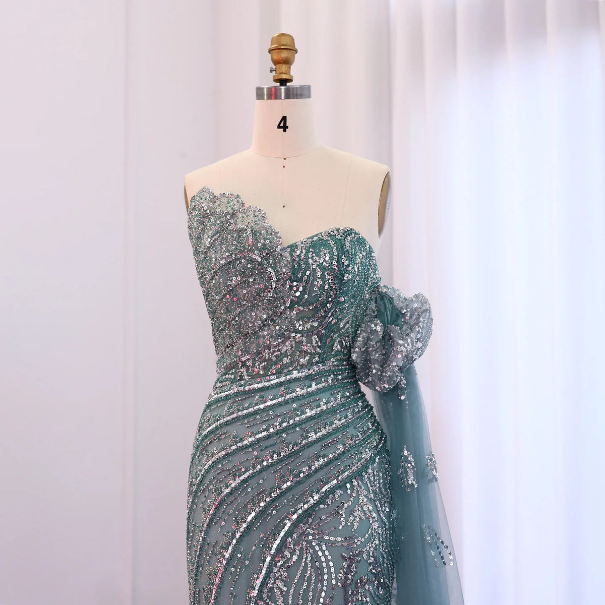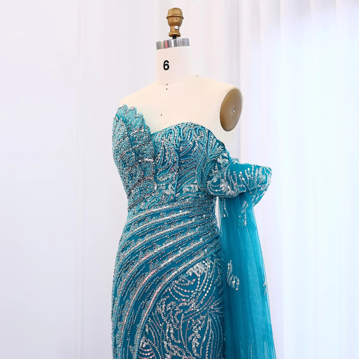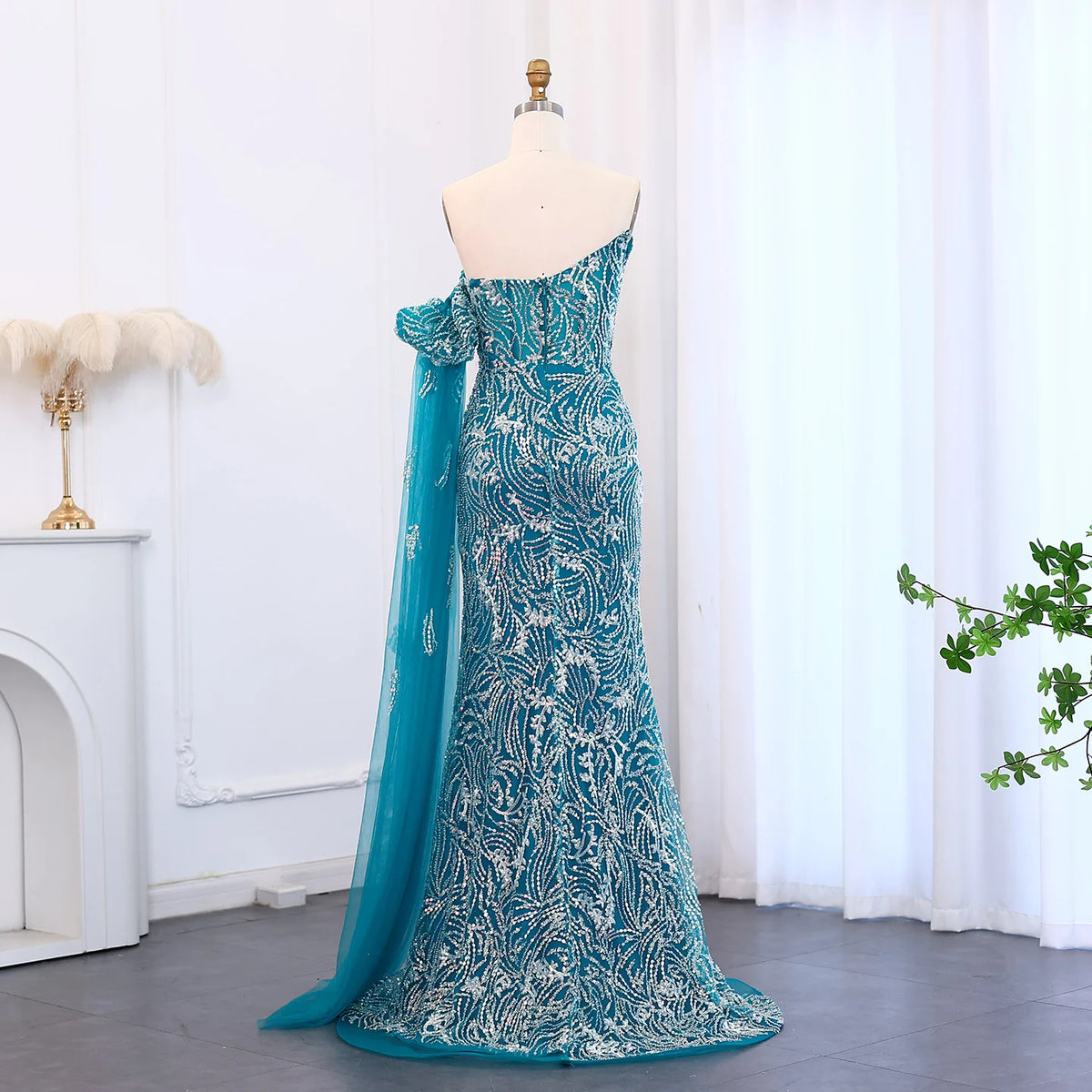 Elevate your evening attire with the Luxury Beaded Scalloped Turquoise Evening Dress SS021. Expertly crafted, this dress features intricate beading that enhances its scalloped design, creating a refined silhouette. The rich turquoise hue adds a sophisticated splash of color, perfect for formal occasions. Designed for those who appreciate meticulous detail and timeless elegance, this gown offers both style and presence for your most memorable events.