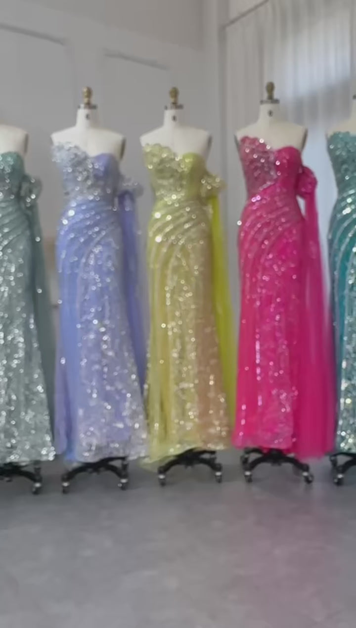 Luxury Beaded Scalloped Turquoise Evening Dress SS021