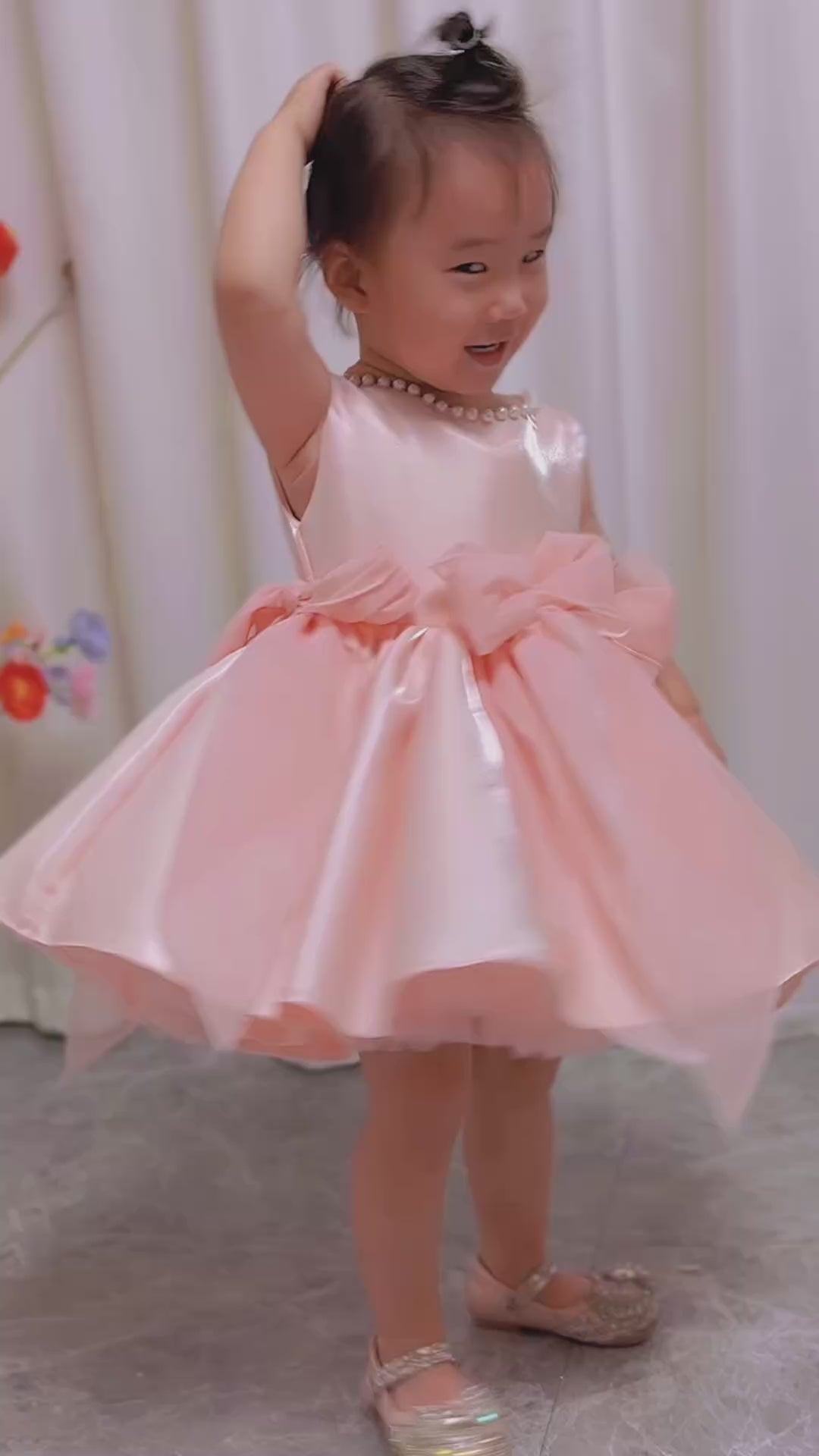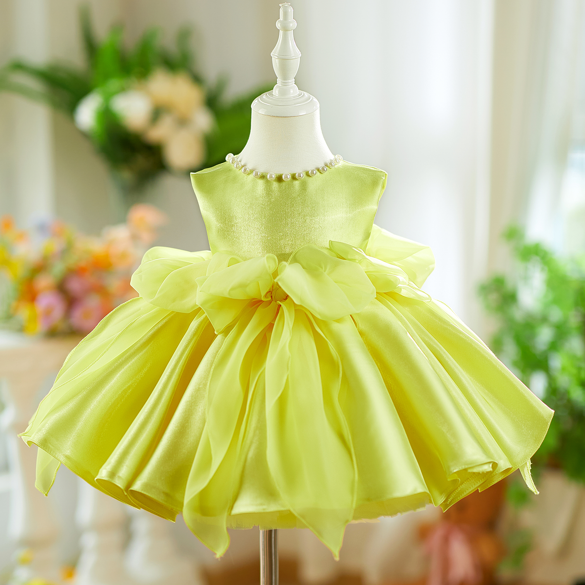This elegant sleeveless white dress features delicate baby pearl embellishments, creating a refined princess look for young girls. Crafted with attention to detail, it offers both comfort and style, making it ideal for special occasions and celebrations. The timeless design ensures your child will look graceful and charming at any event.