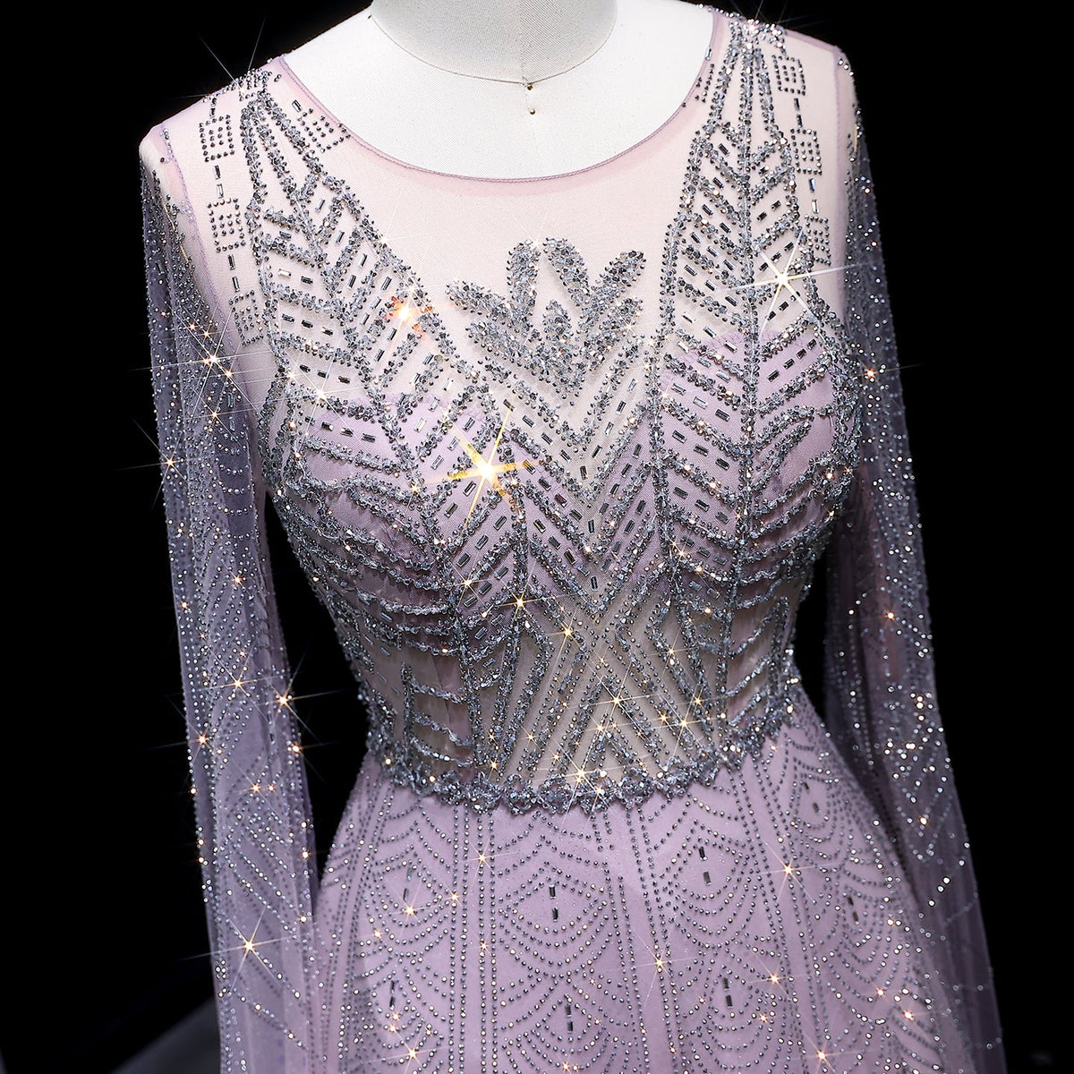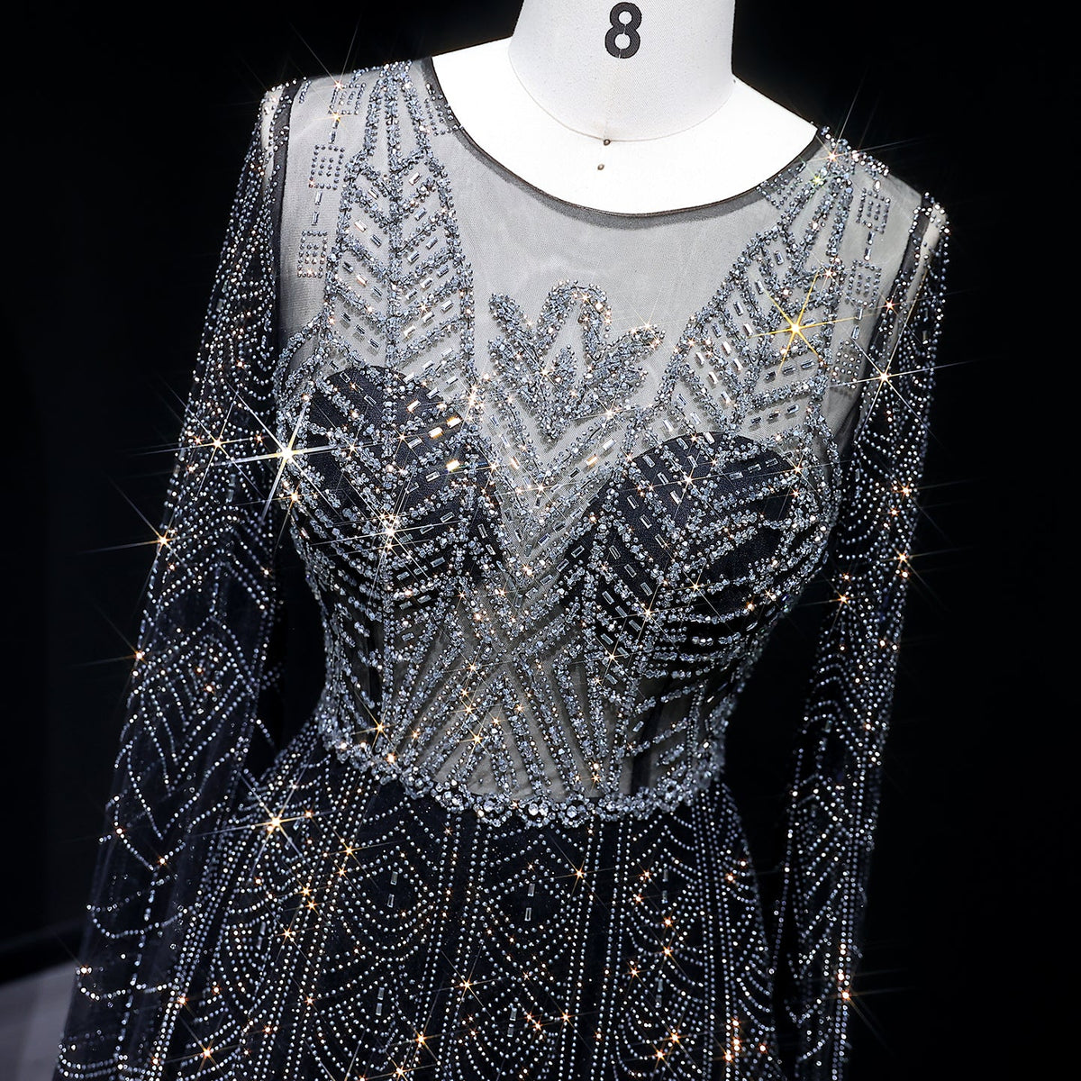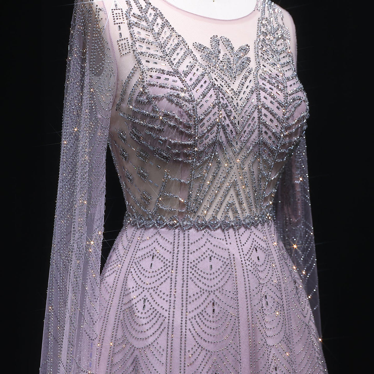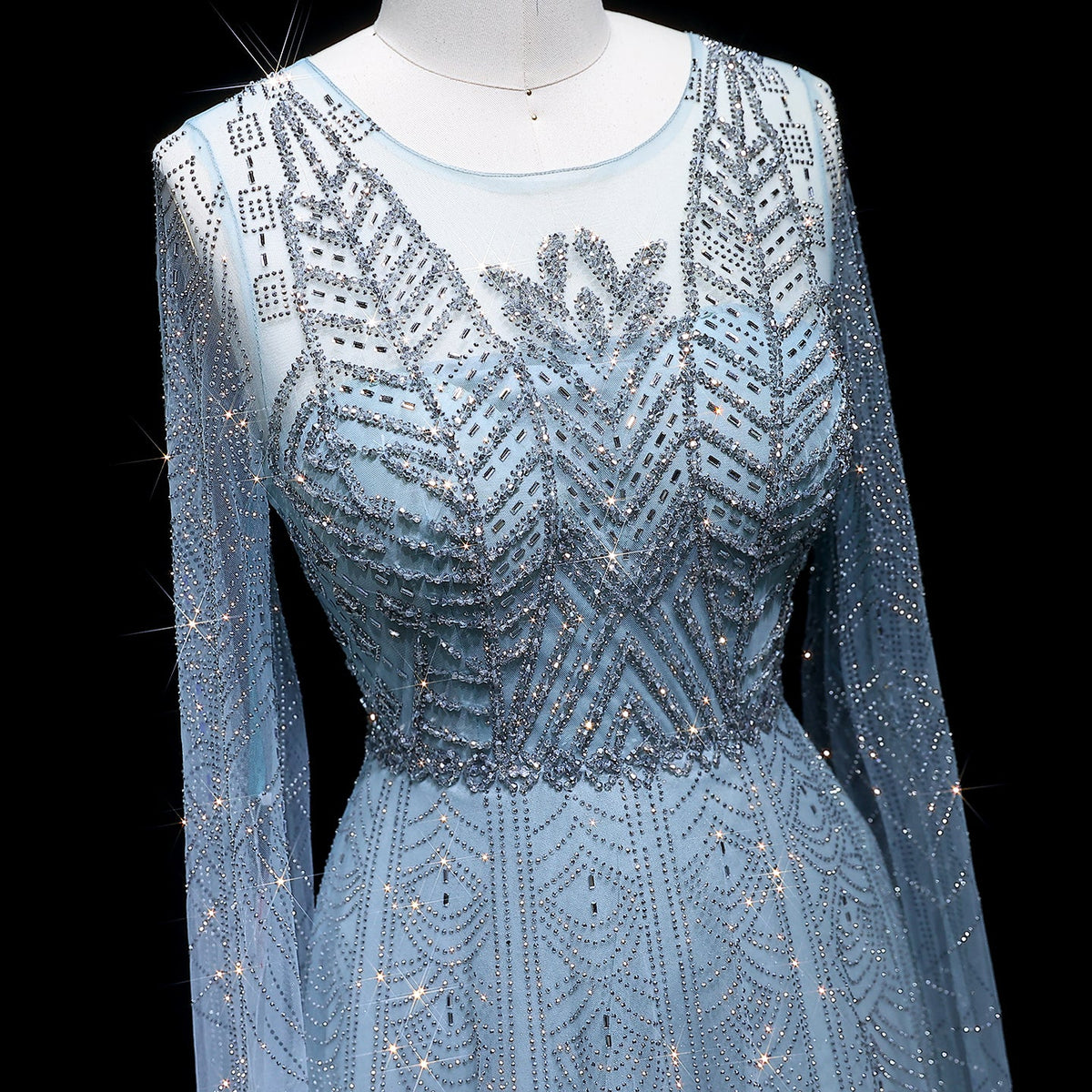 Elevate your evening elegance with this Luxury Crystal Blue Evening Dress featuring graceful cape sleeves. Crafted to enhance your silhouette, its rich blue hue and delicate crystal accents create a refined, sophisticated look perfect for formal occasions. The cape sleeves add a dramatic yet tasteful flair, ensuring you stand out with timeless style and poise.