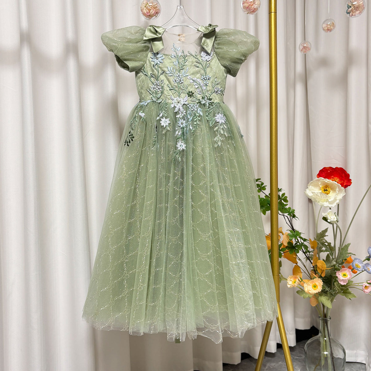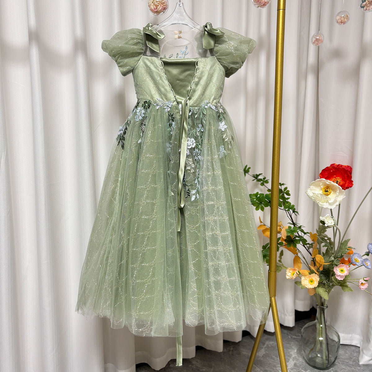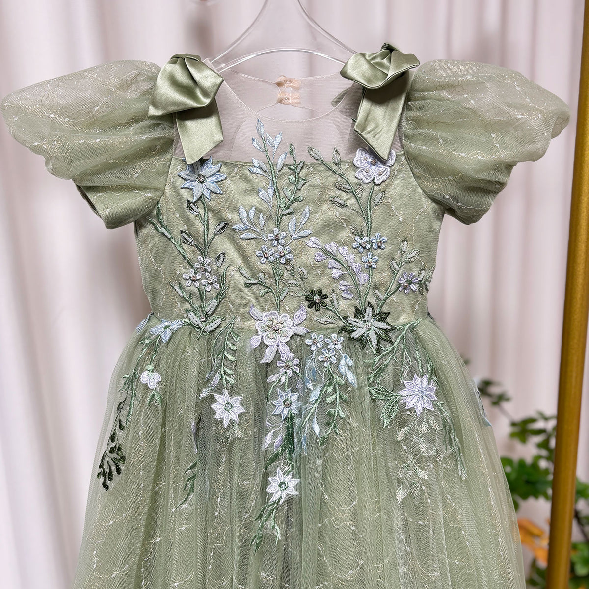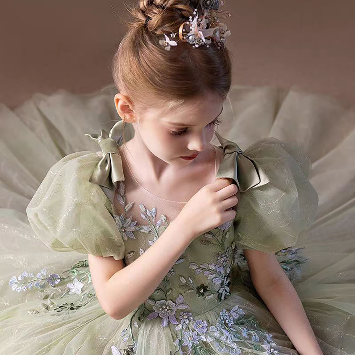 The Jill Embroidered Tulle Flower Girl Dress showcases exquisite craftsmanship with delicate embroidery on soft tulle fabric. Designed to create a graceful and airy silhouette, this dress offers both elegance and comfort for your little princess. Perfect for weddings and formal events, its refined details and expert tailoring ensure a timeless look that enhances any special occasion.