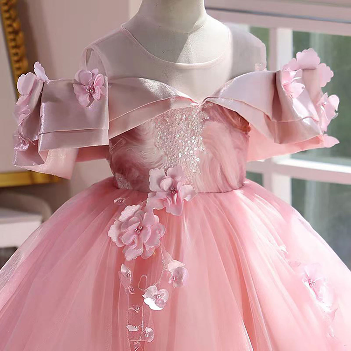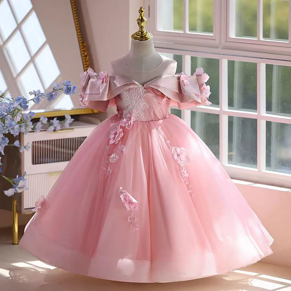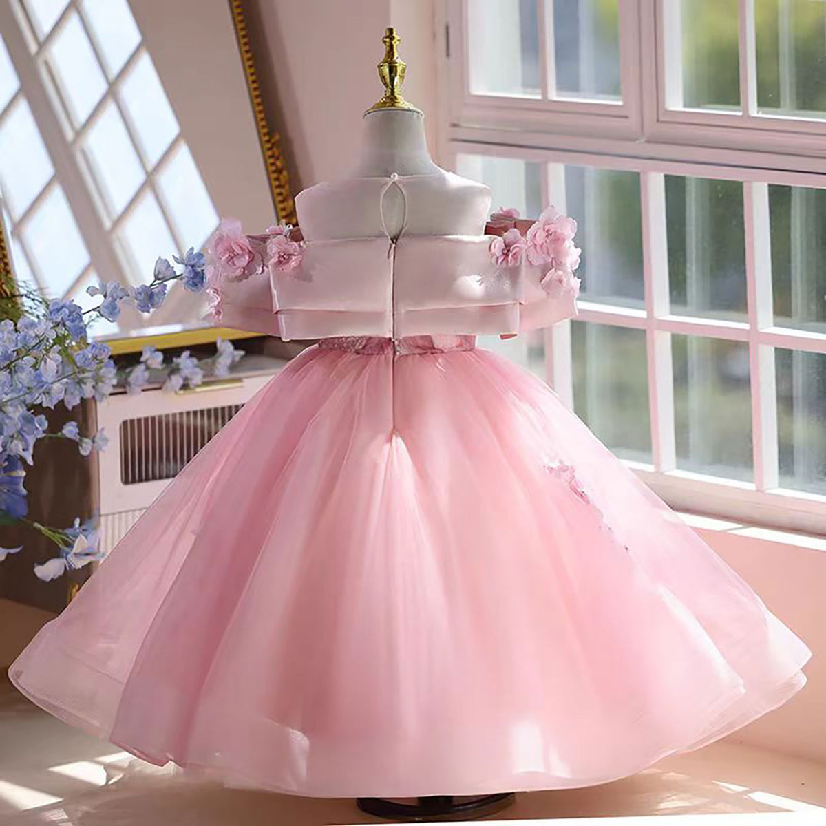 Off-Shoulder Applique Tulle Flower Girl Dress Princess D048