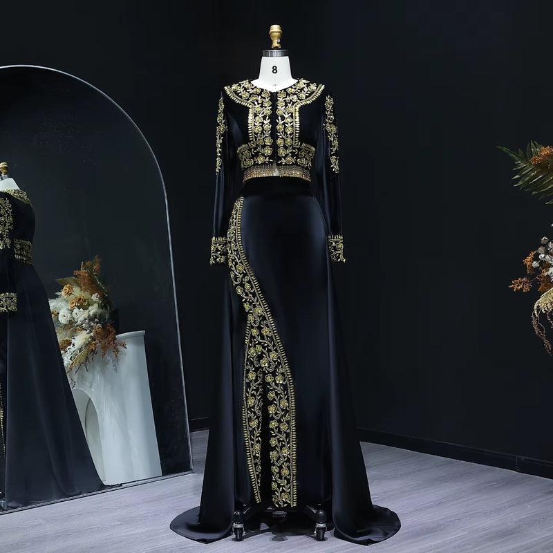 Luxury Black Crystal Two-Piece Evening Dress with High Slit SS458