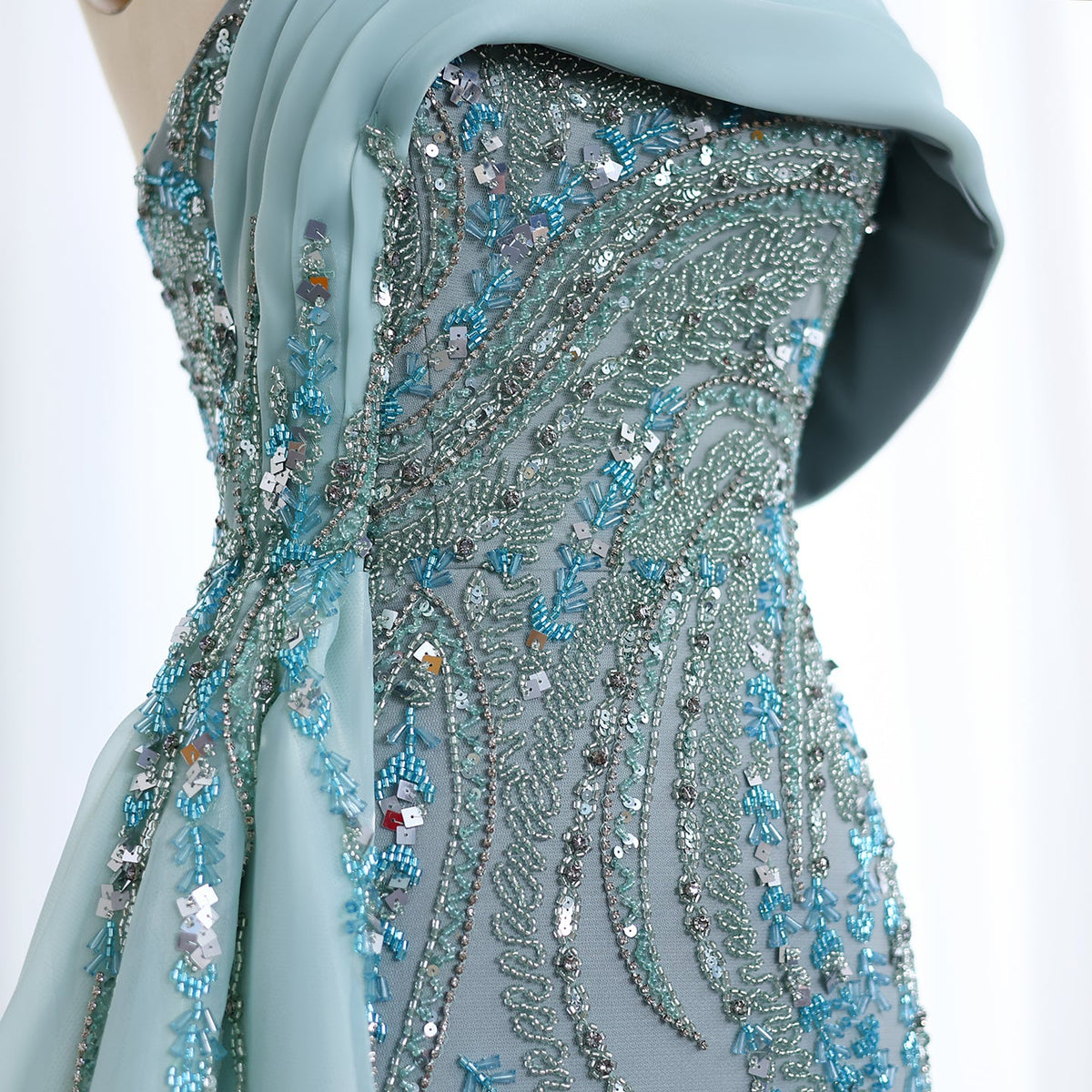 Luxury Turquoise One Shoulder Evening Dress with Overskirt SS572