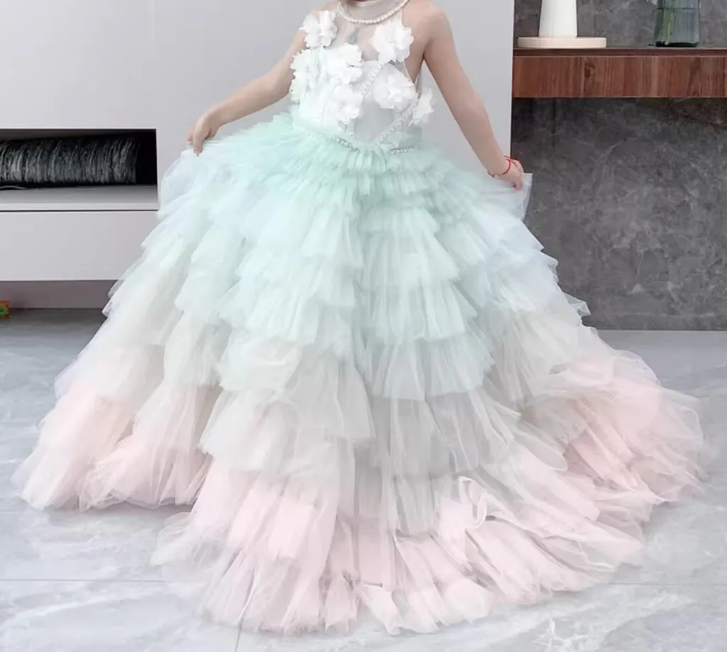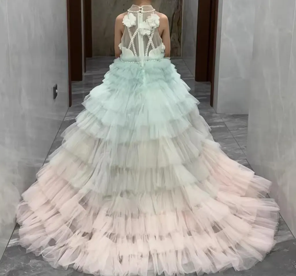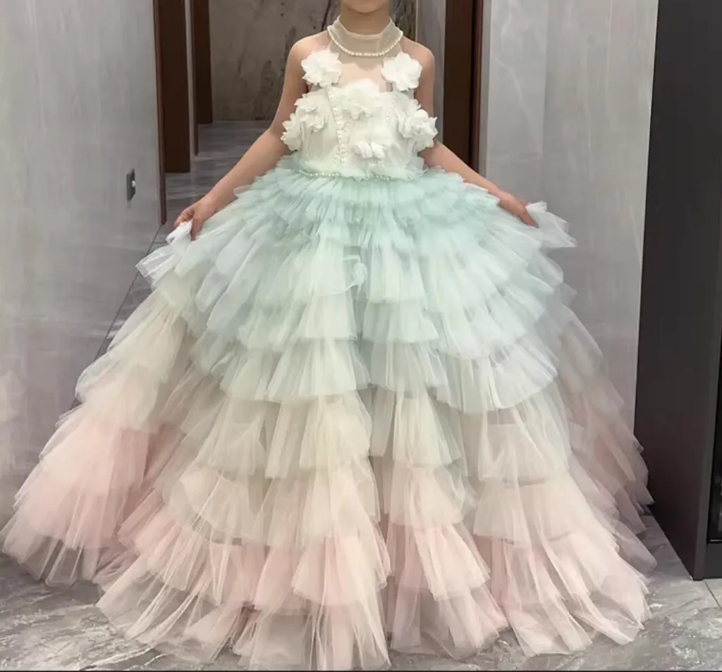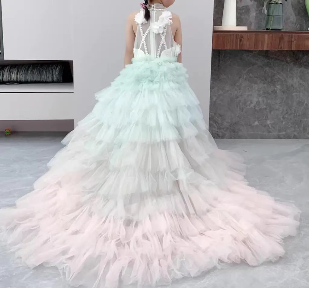Experience the ultimate luxury with our Jill Wish Sage Green Flower Girl Dress. Handmade with exquisite flower detailing and a tiered princess ball gown design, this dress is perfect for weddings and birthday parties alike. Elevate your little girl's style and make her feel like a true princess on her special day.