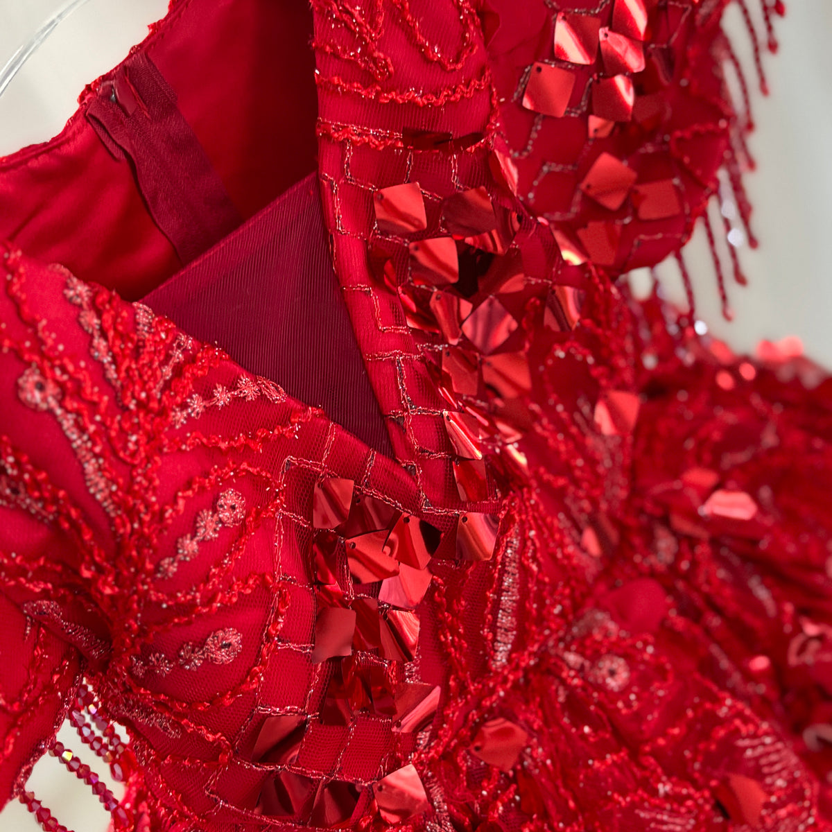 Make your little princess feel like royalty with the Jill Red Flower Girl Dress for her 1st birthday party! This stunning dress is perfect for a regal look, with its bright red color and delicate flower design. Your child will feel like the belle of the ball and make unforgettable memories on her special day.