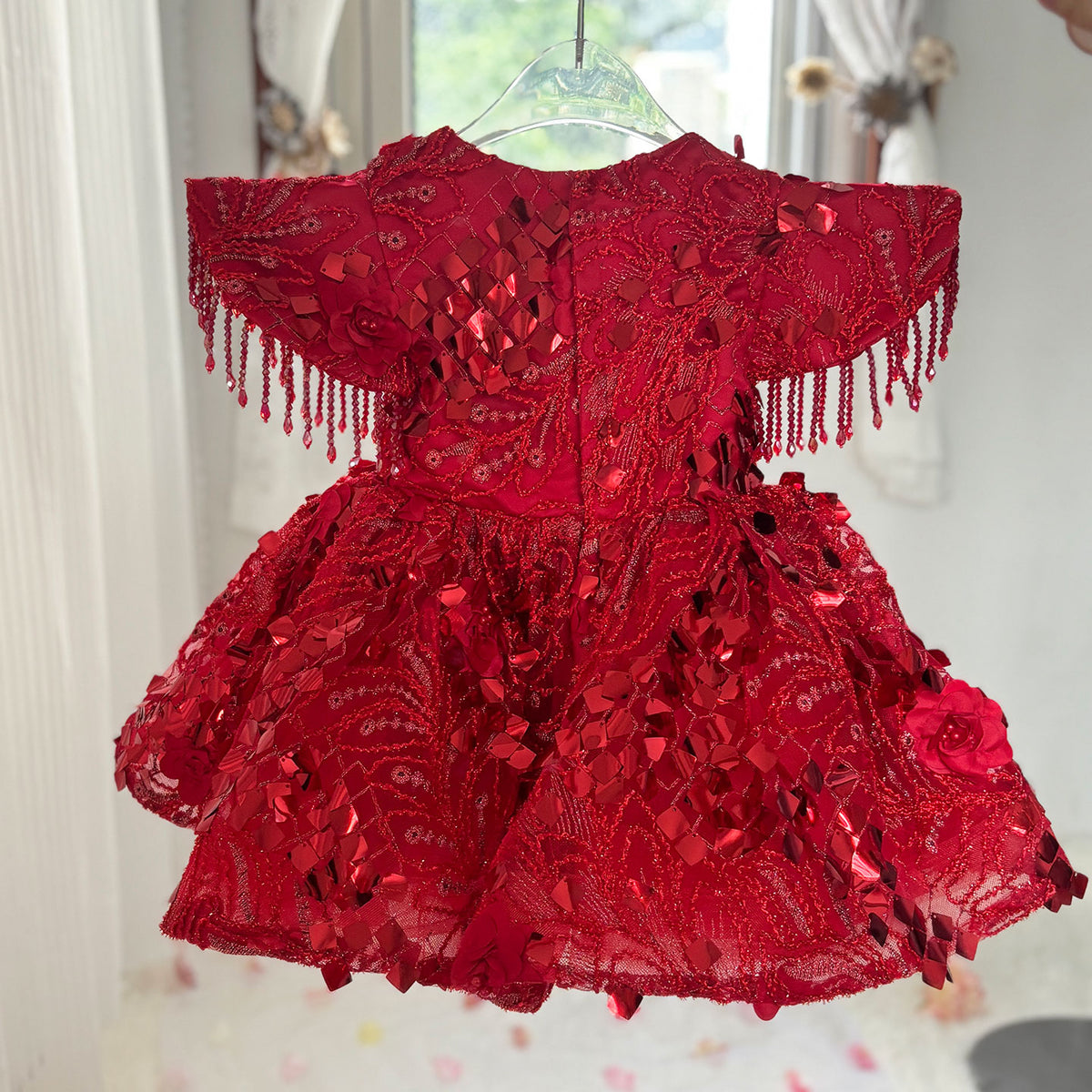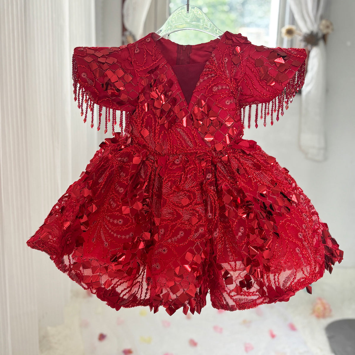 Red Flower Girl Dress for Princess Kids 1st Birthday Party J469
