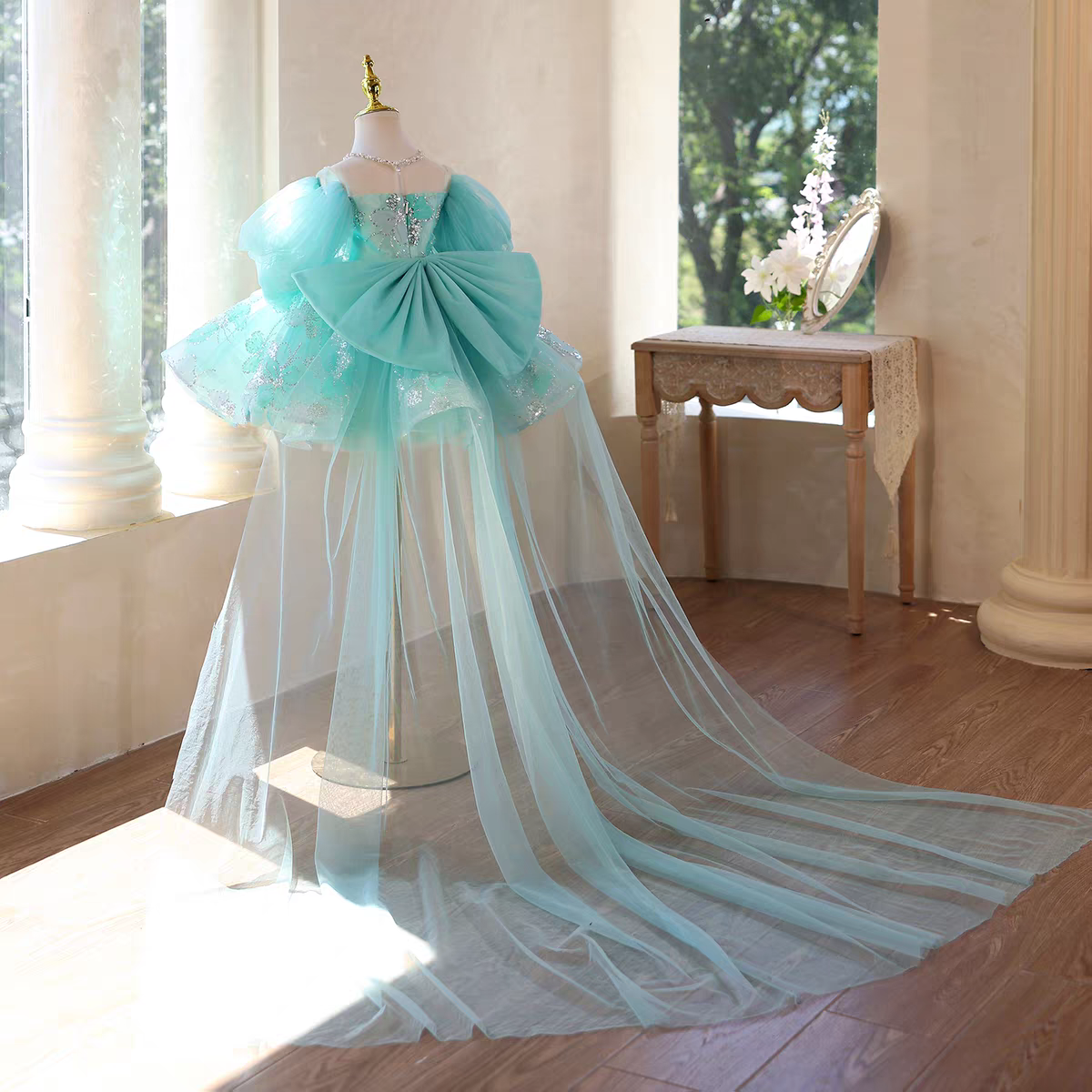 Charming Turquoise Beaded Butterfly Flower Girl Dress D110