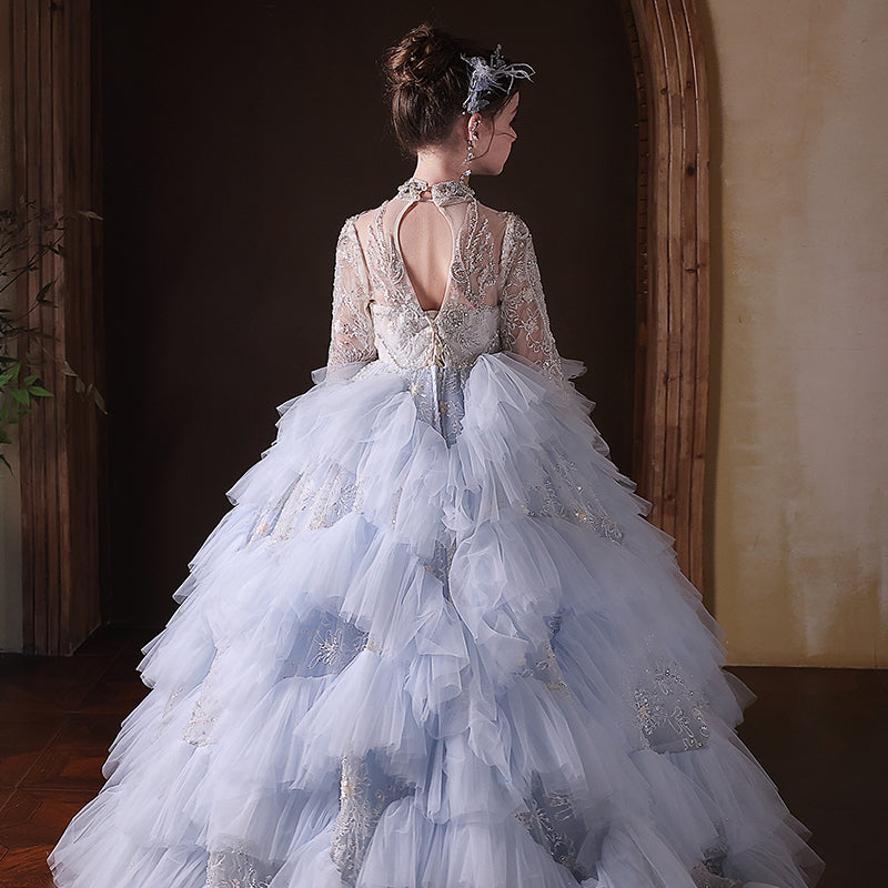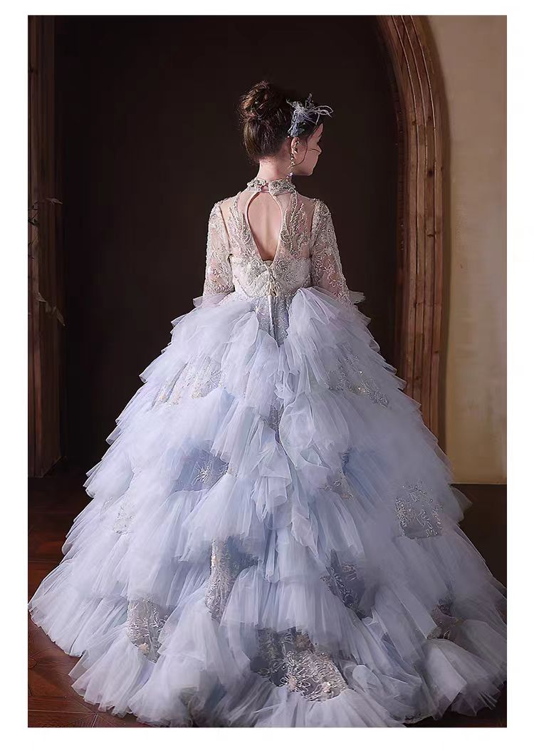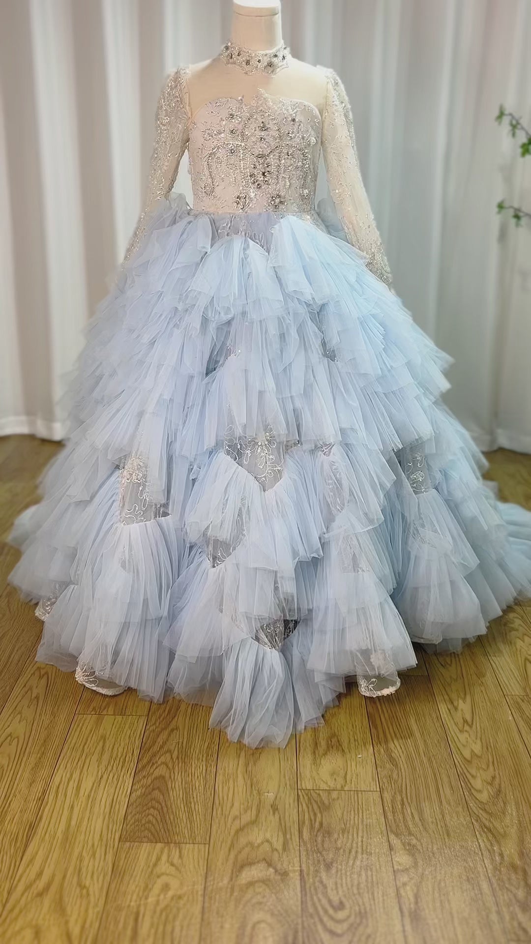 Experience a touch of luxury with our Jill Wish Dress! This stunning blue Dubai girl dress features intricate beading and pearls, fit for a princess. Perfect for weddings, birthday parties and special occasions. Your little one will feel like royalty in this long ball gown.