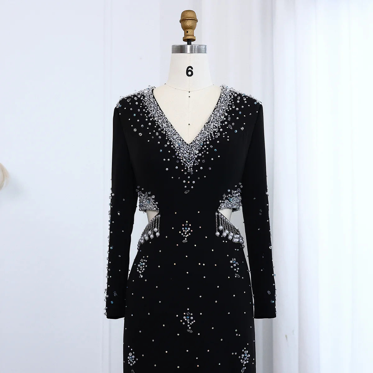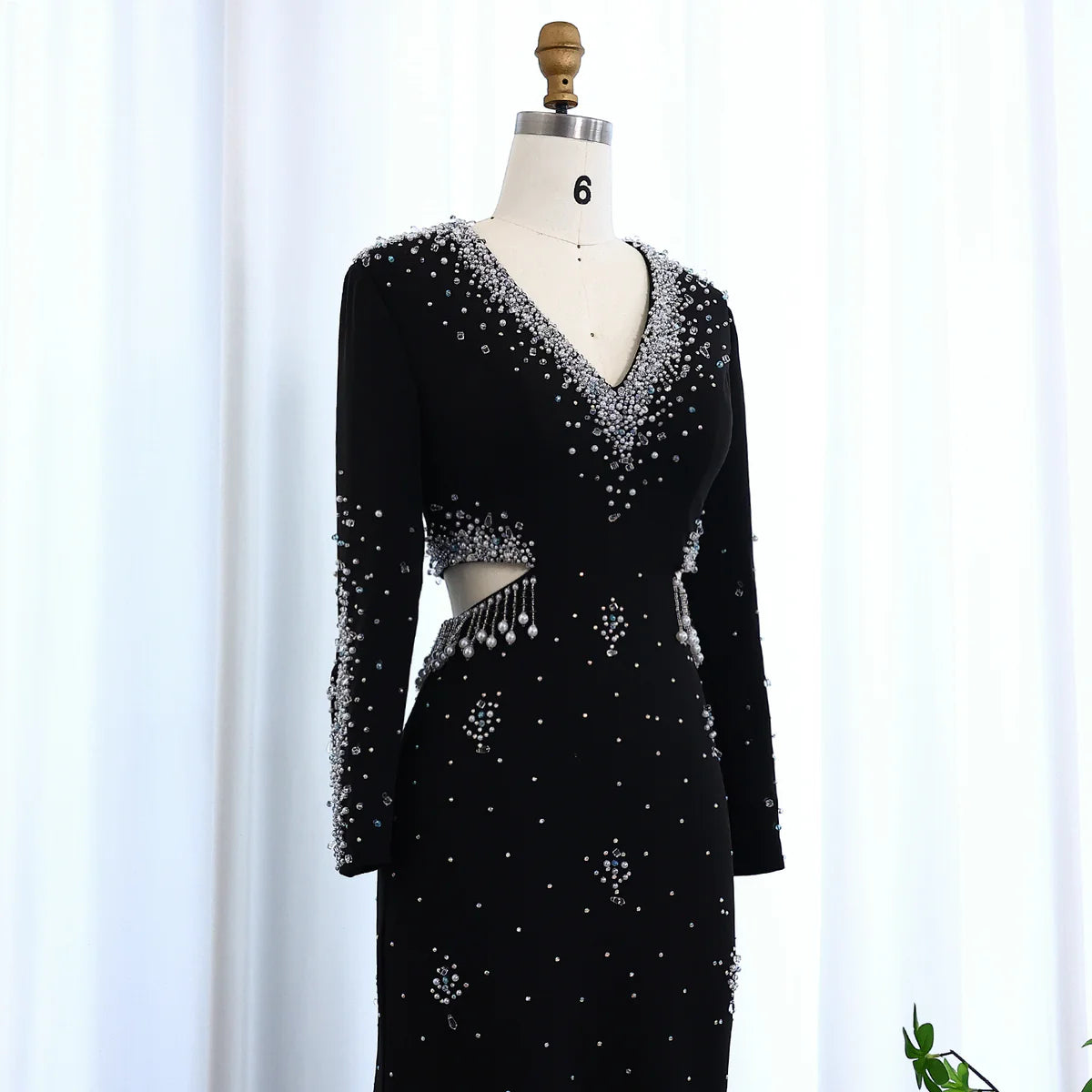 Glamorous Black Beaded Prom Dress with Pearls XD019