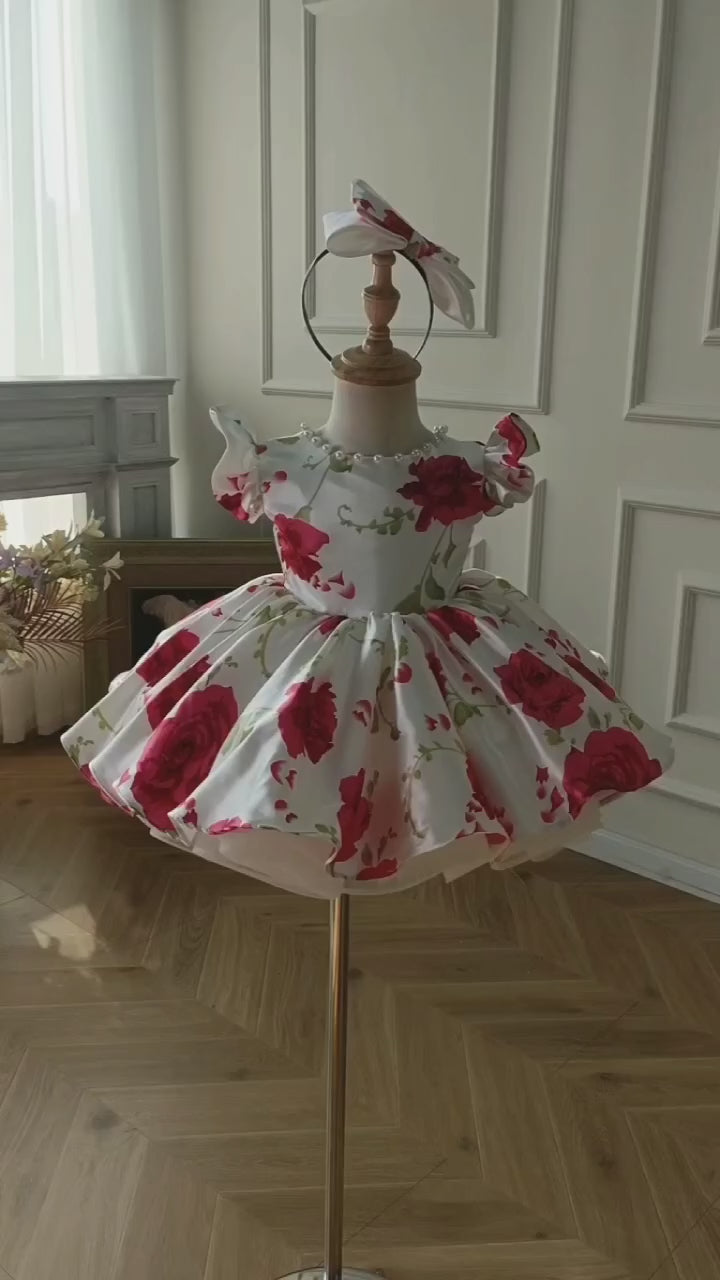 Red Baby Puffy Sleeve Knee Length Baby Girl Dress J051