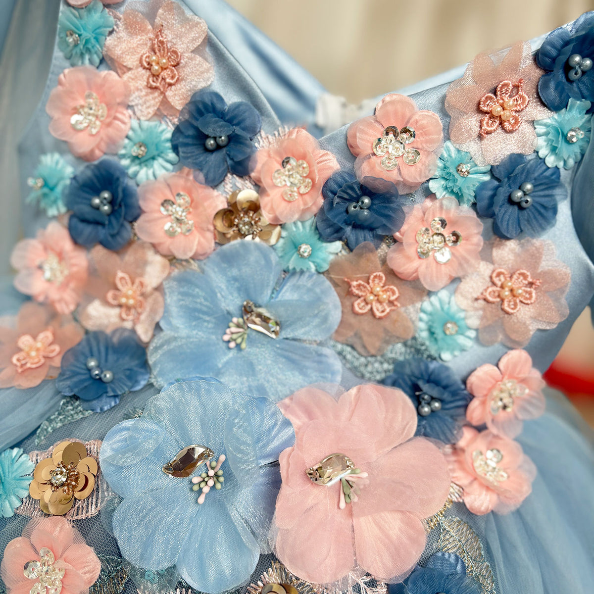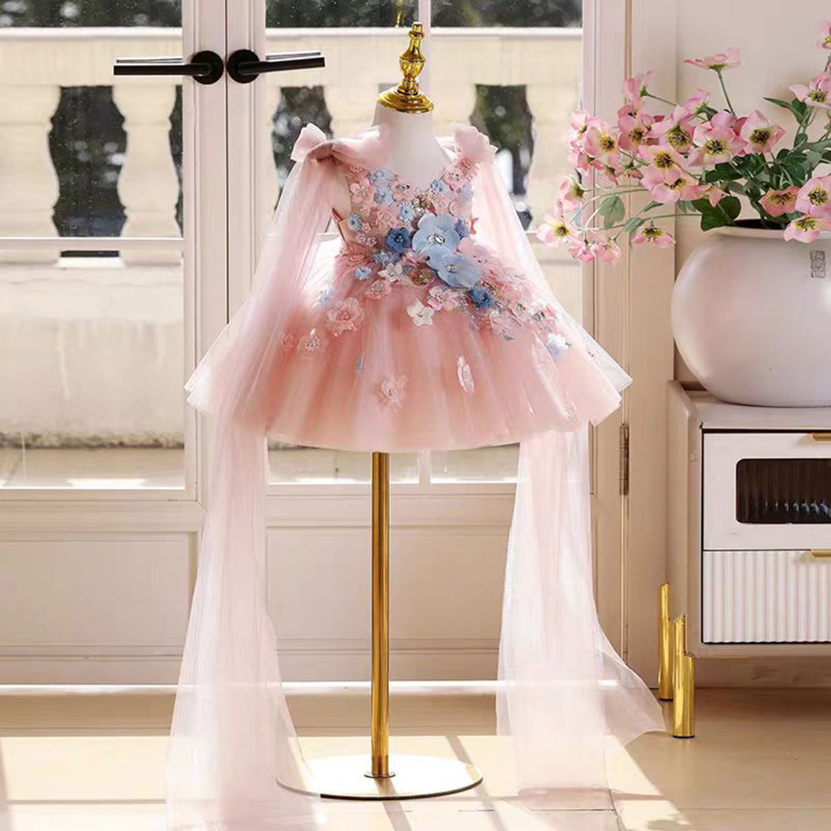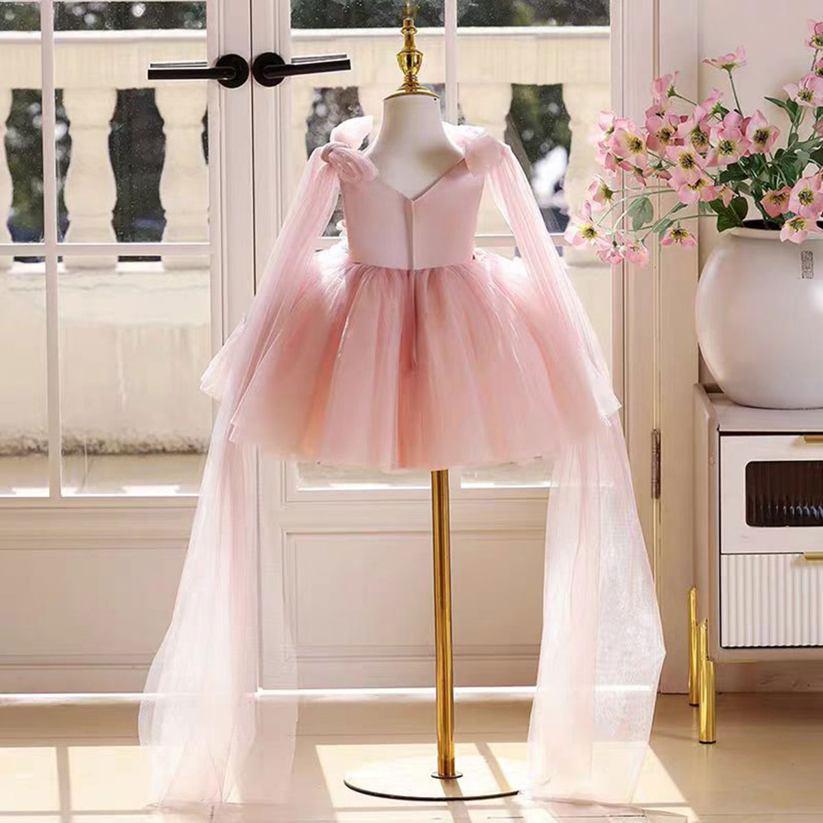 Expertly crafted with a V-neck and cap sleeves, the Jill Elegant flower girl dress boasts delicate tulle and elegant appliques. Perfect for any special occasion with its charming design, this dress is the ideal choice for a princess-like appearance that will make her feel confident and beautiful.