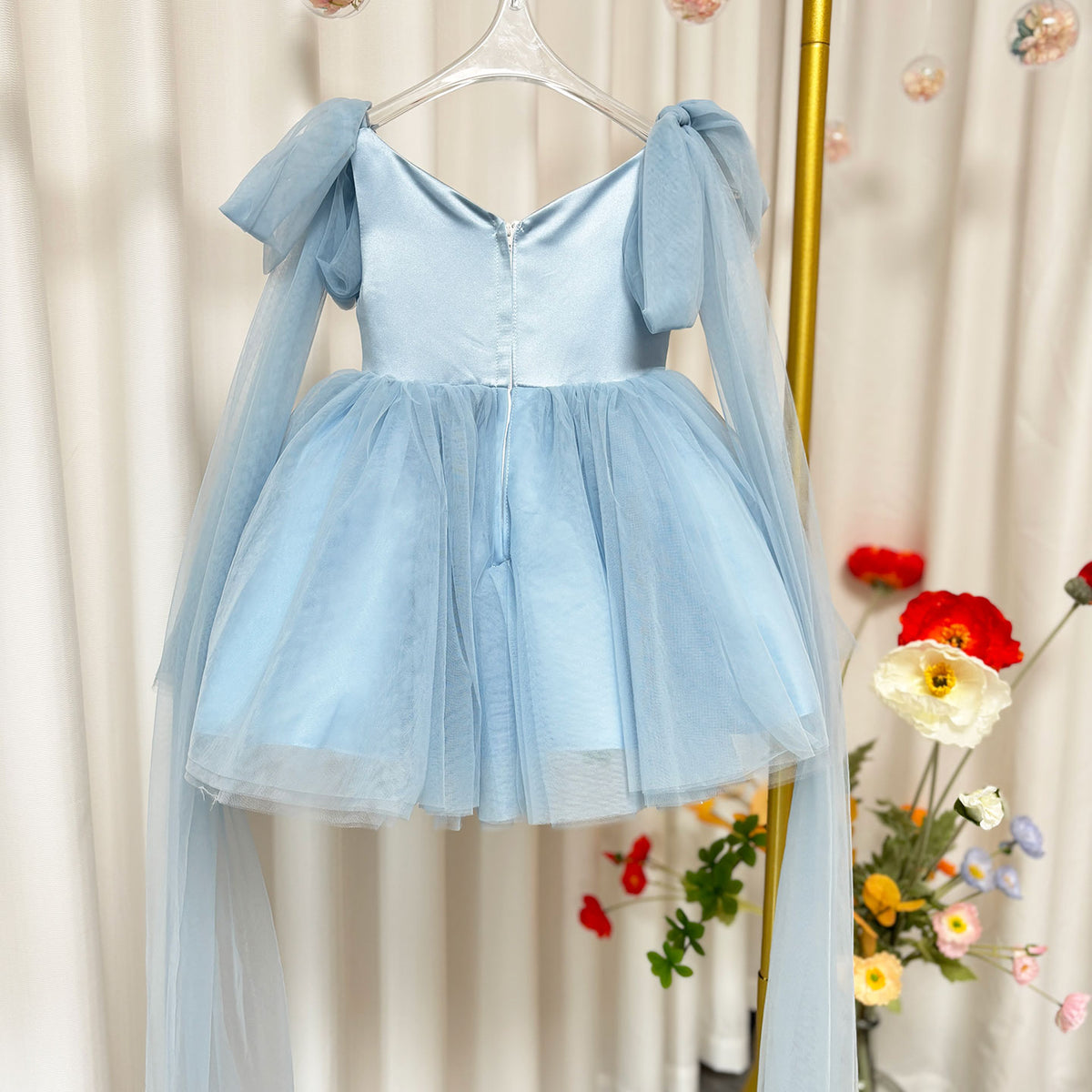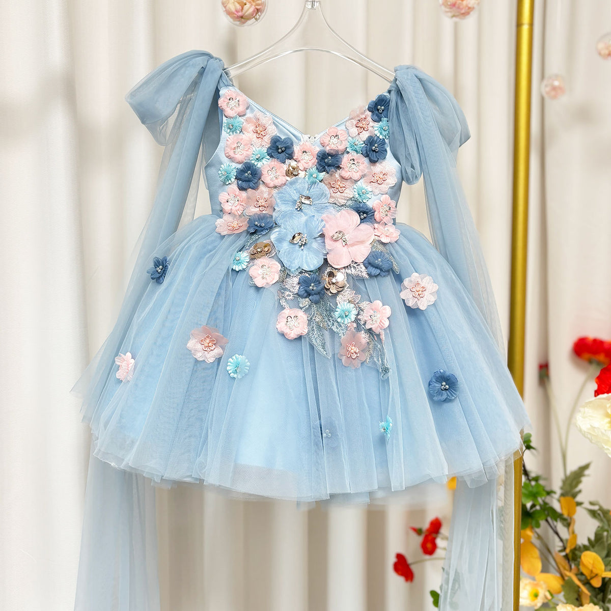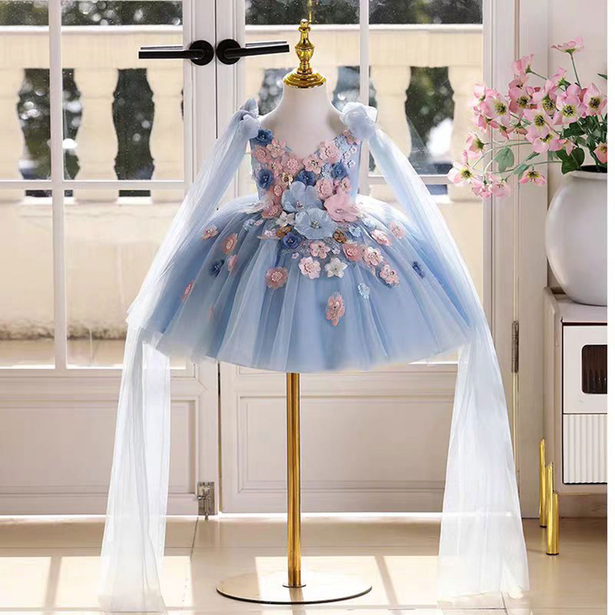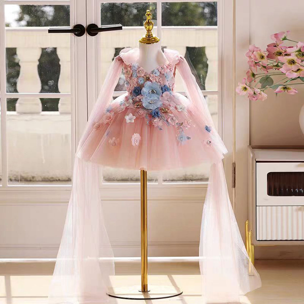 Expertly crafted with a V-neck and cap sleeves, the Jill Elegant flower girl dress boasts delicate tulle and elegant appliques. Perfect for any special occasion with its charming design, this dress is the ideal choice for a princess-like appearance that will make her feel confident and beautiful.