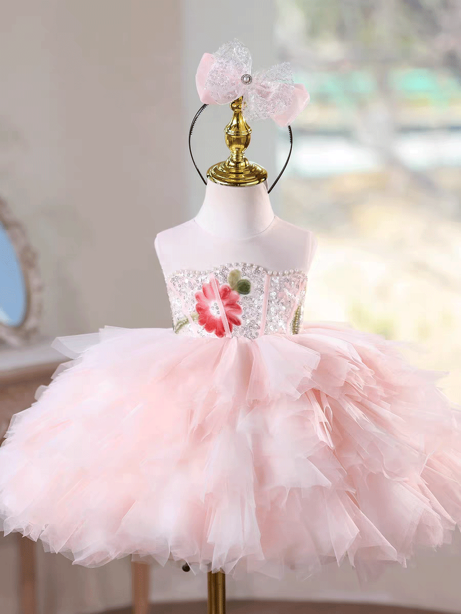 3D Floral Pink Ruffle Dress - Toddler Birthday Party Outfit D253