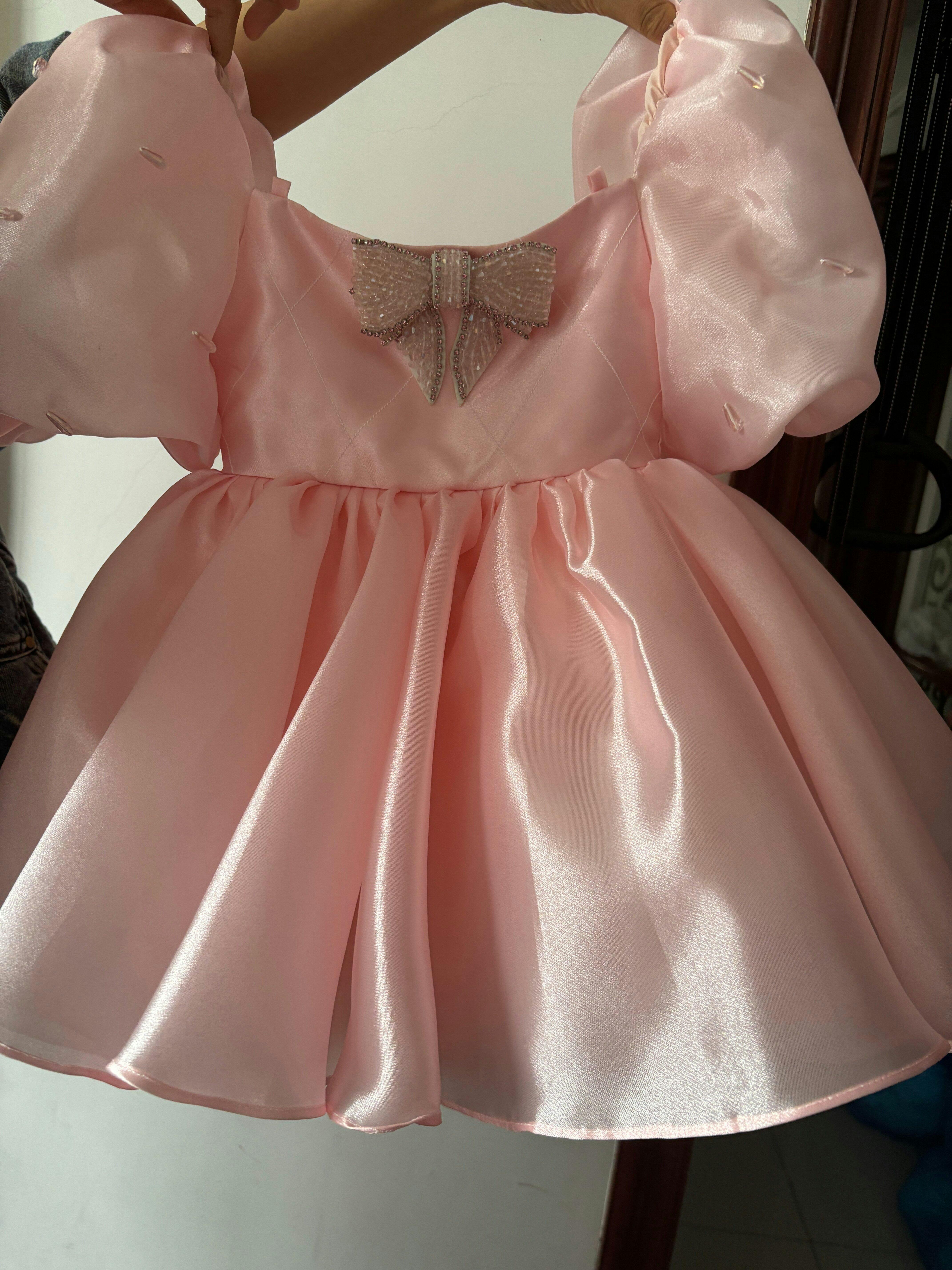 This luxurious pink dress features stunning beadwork, puffy sleeves, and a beautiful bow, making it the perfect choice for your little one's birthday, wedding, or communion party. Its Dubai princess design adds an extra touch of charm and elegance. Give your child the gift of feeling like royalty with Luxury Pink Girl Dress
