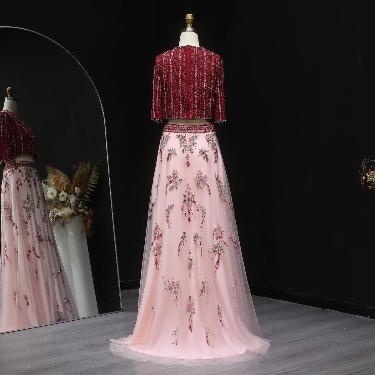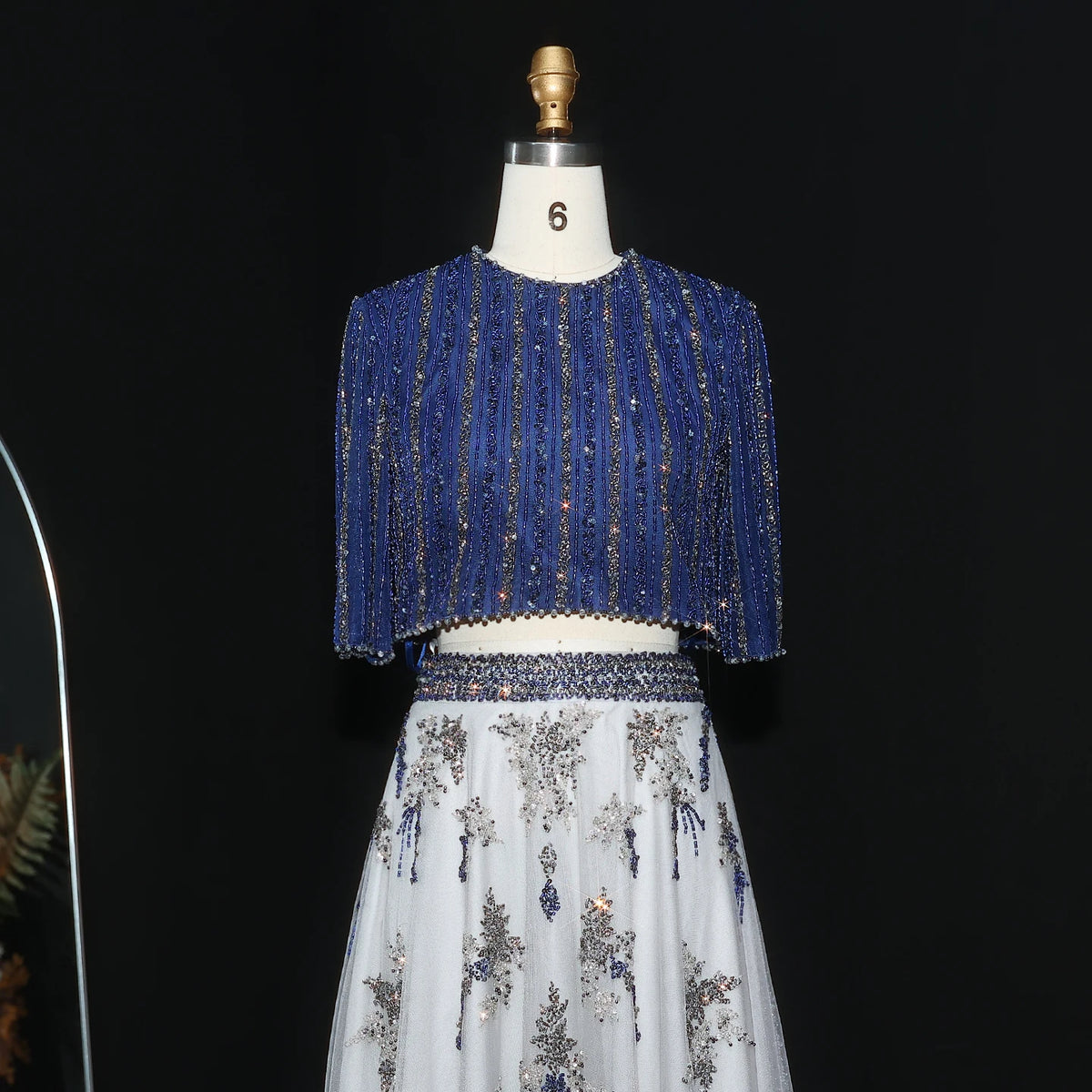 Luxury Dubai Blue Yellow 2 Pieces Evening Dresses for Women SS490