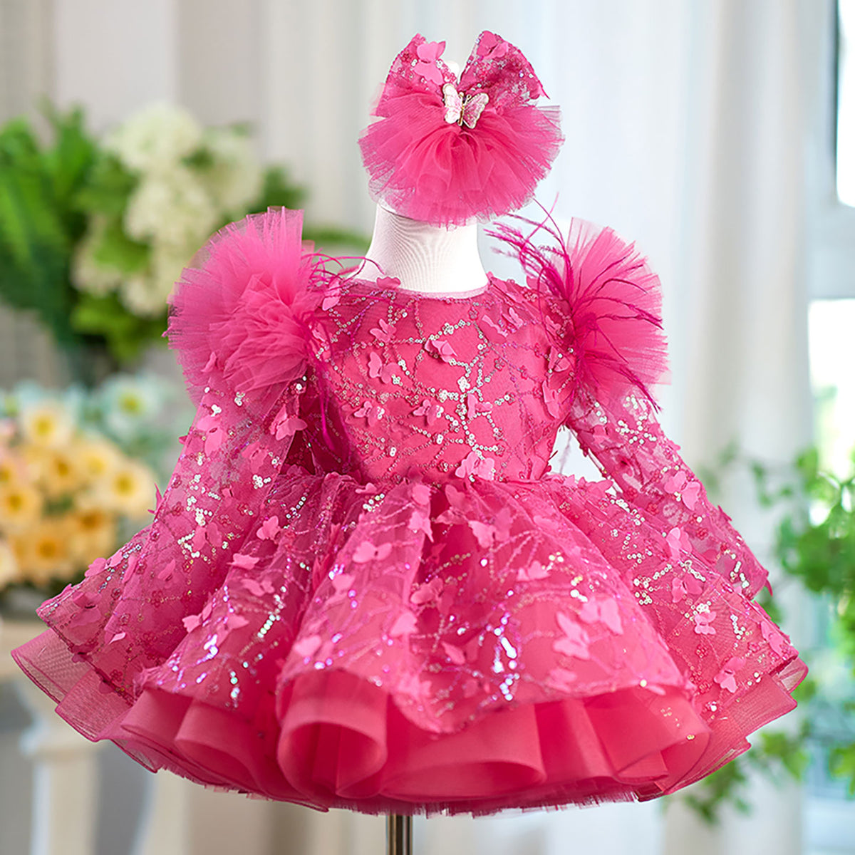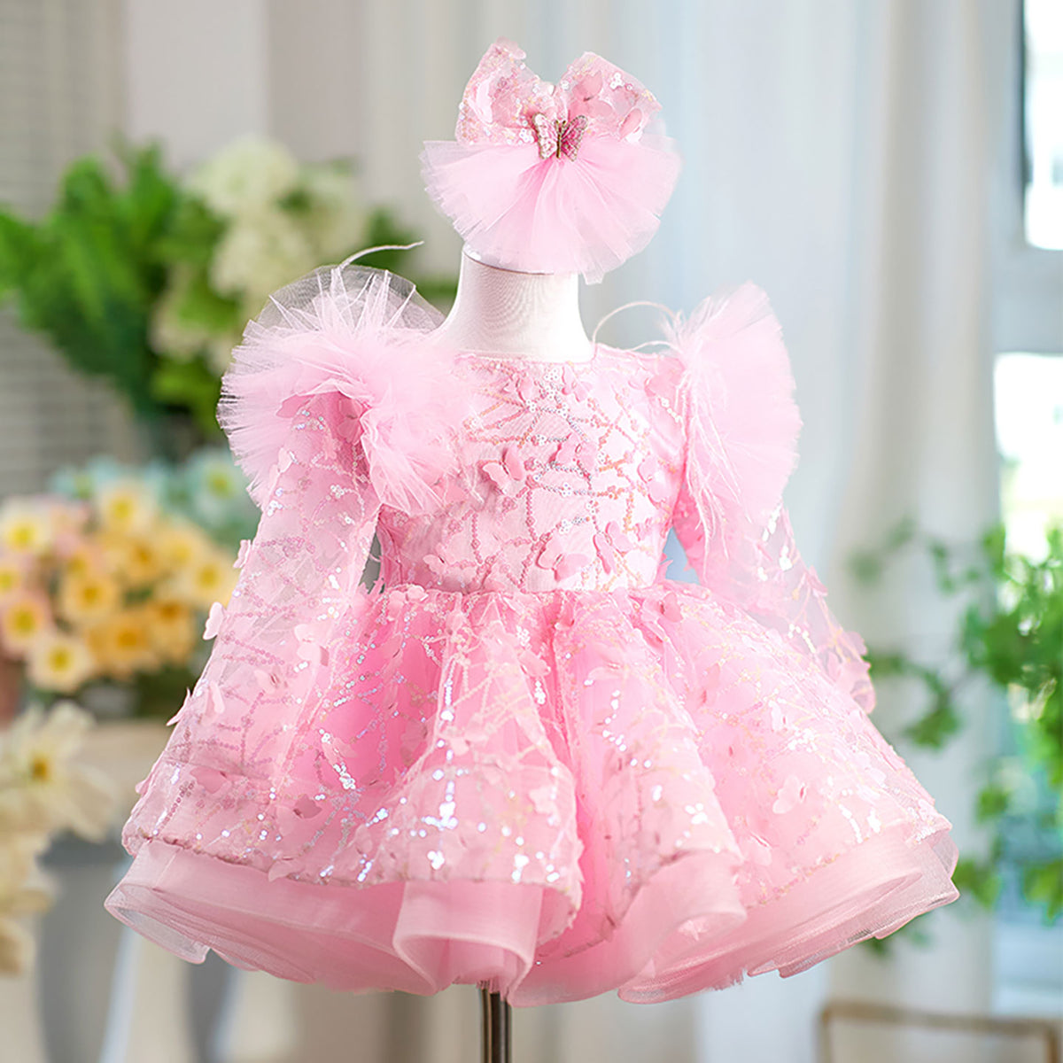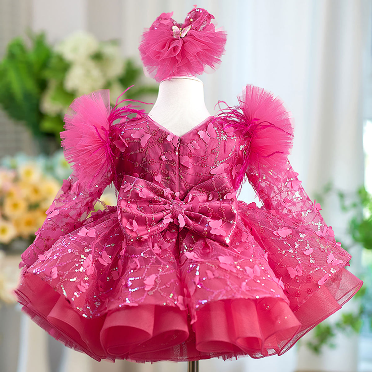 Elevate your little one's special occasion attire with the Jill Butterfly Applique Long Sleeves Flower Girl Dress. This exquisite J555 design features delicate butterfly appliques and a graceful bow detail, creating a perfect balance of elegance and whimsy. The long sleeves provide versatility for various seasons, while the thoughtful construction ensures comfort throughout ceremonial events. Ideal for weddings, formal celebrations, or photography sessions.