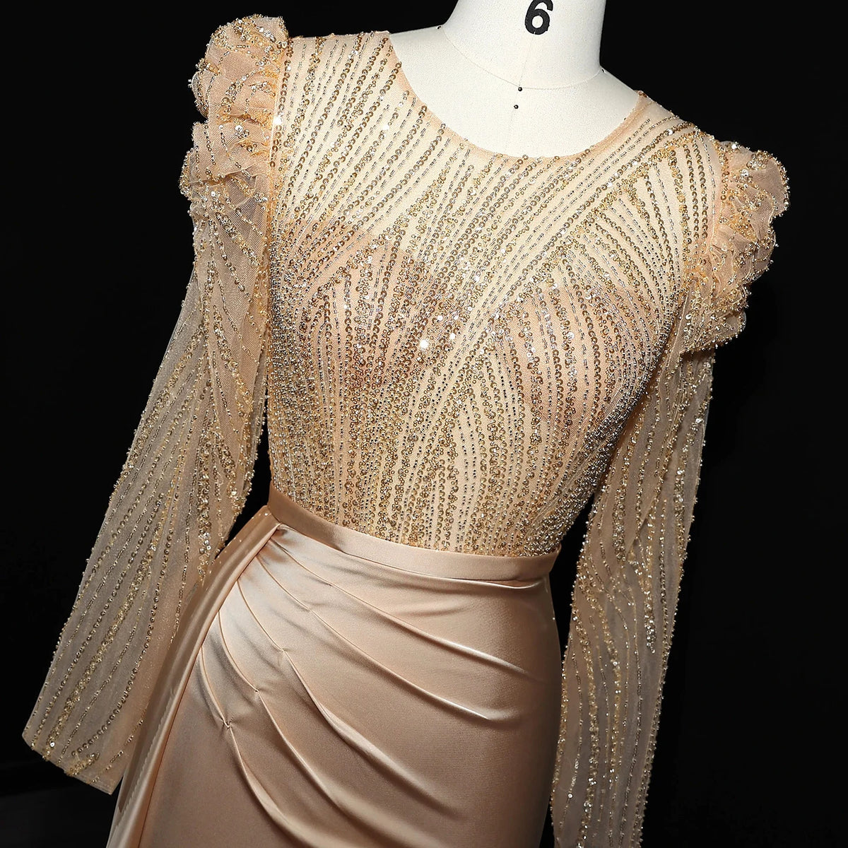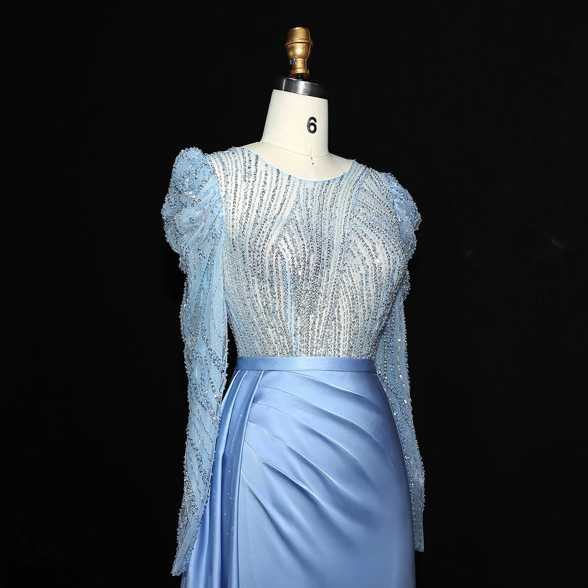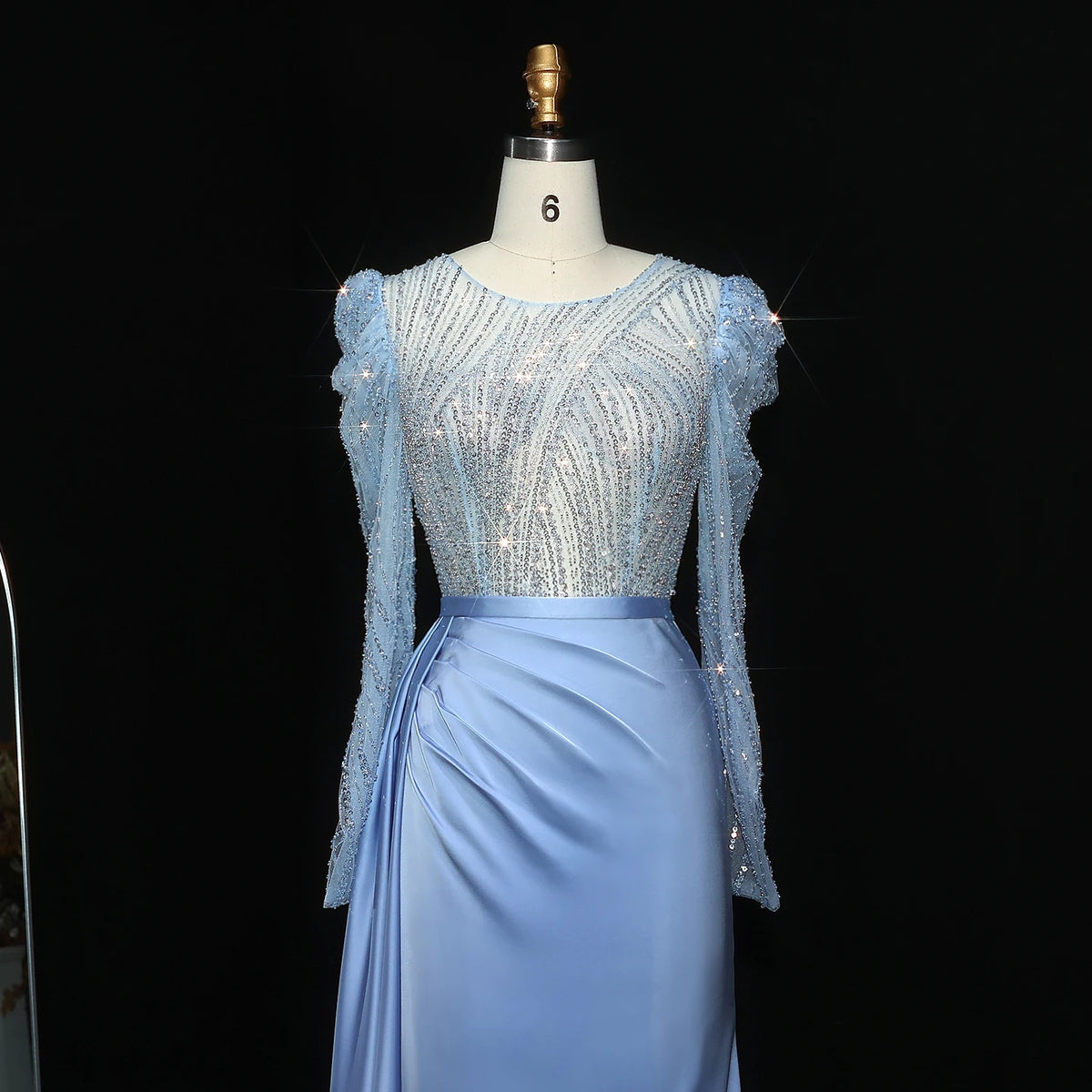Elegant Gold Mermaid Long Sleeves Evening Dress Blue SS072