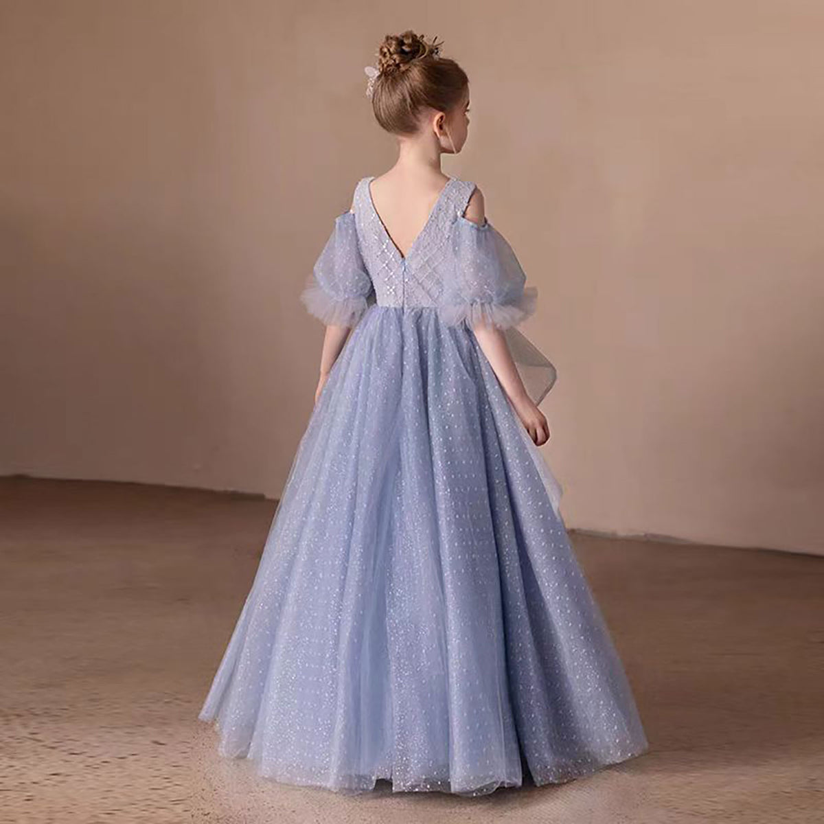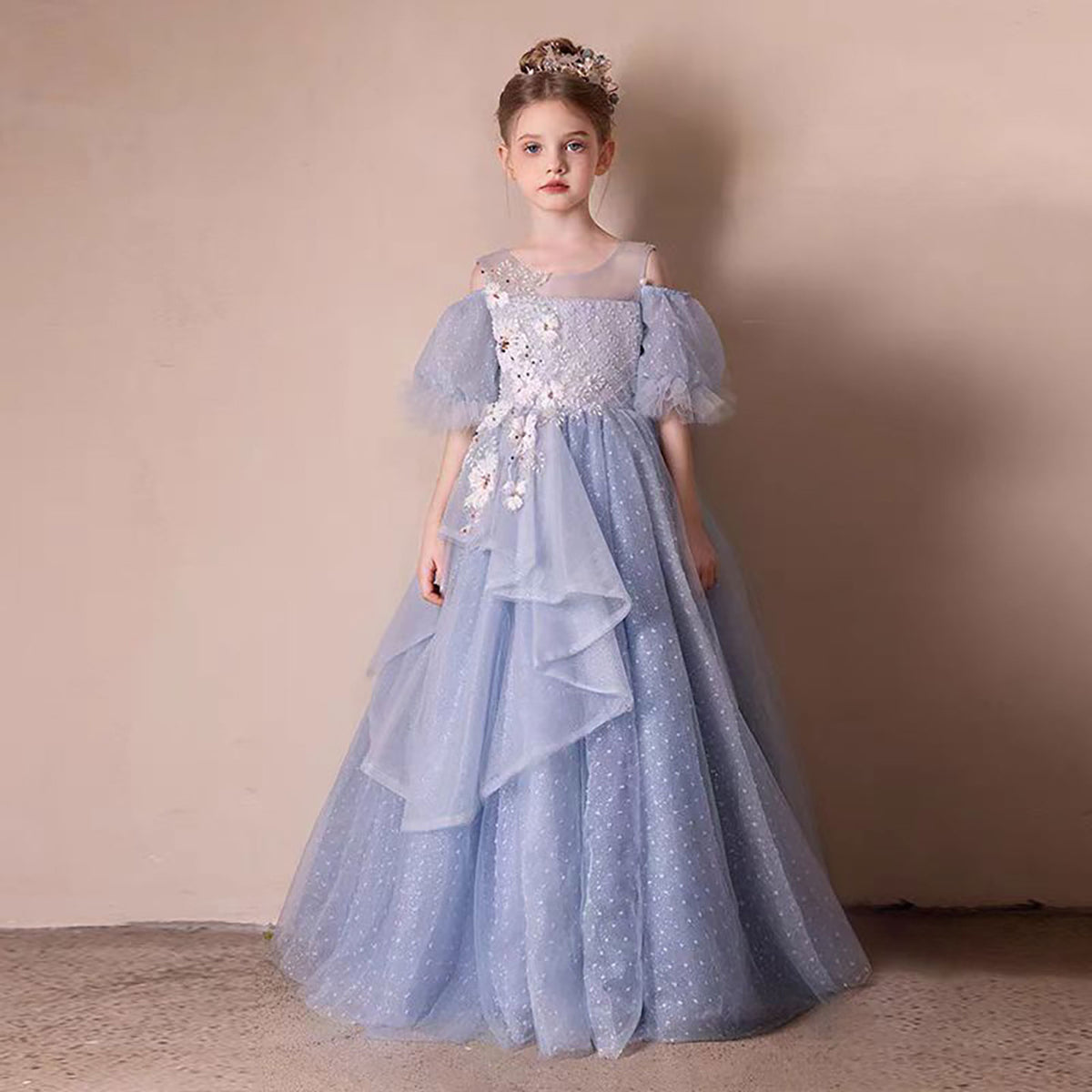 Off-Shoulder Applique Pearled Flower Girl Dress D306