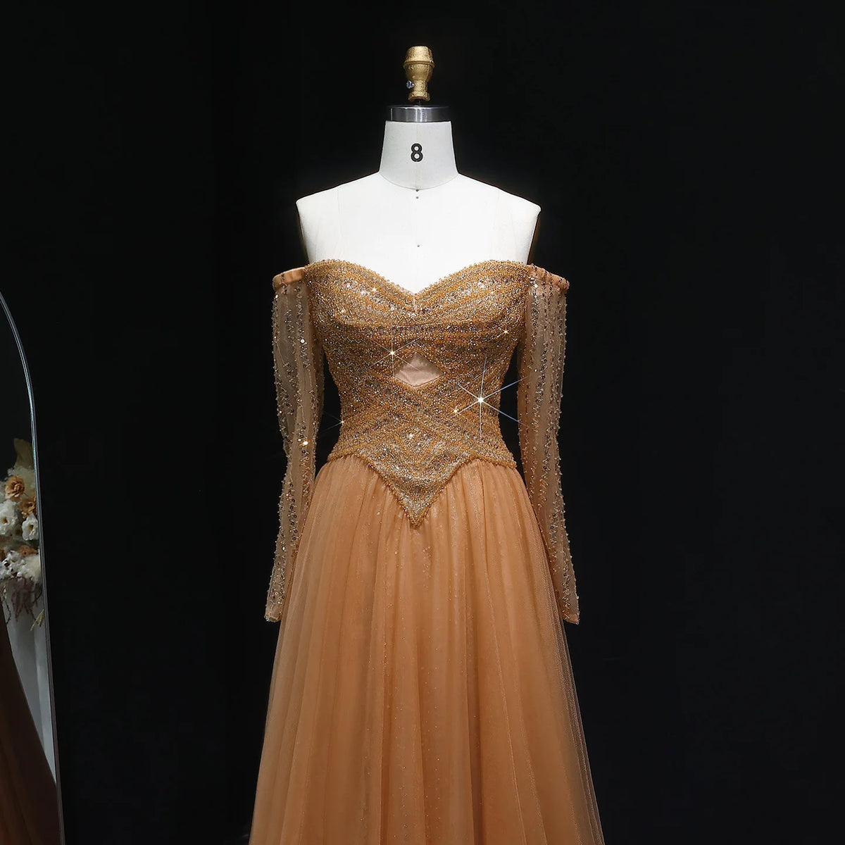 Champagne Sweetheart Neck Strapless Evening Dress SS116
