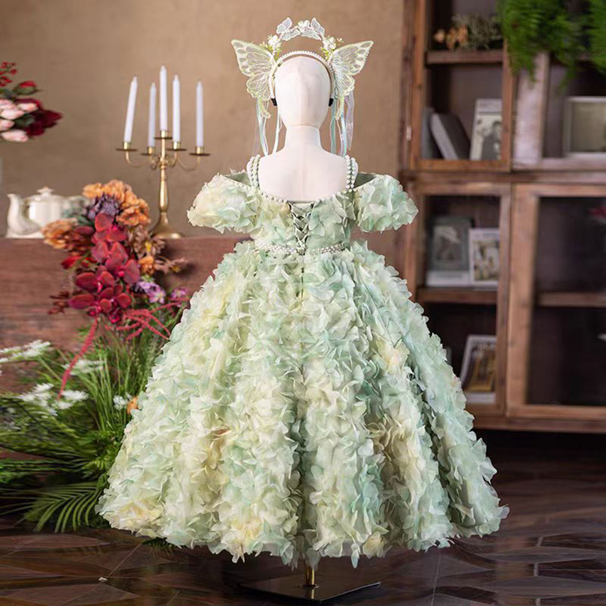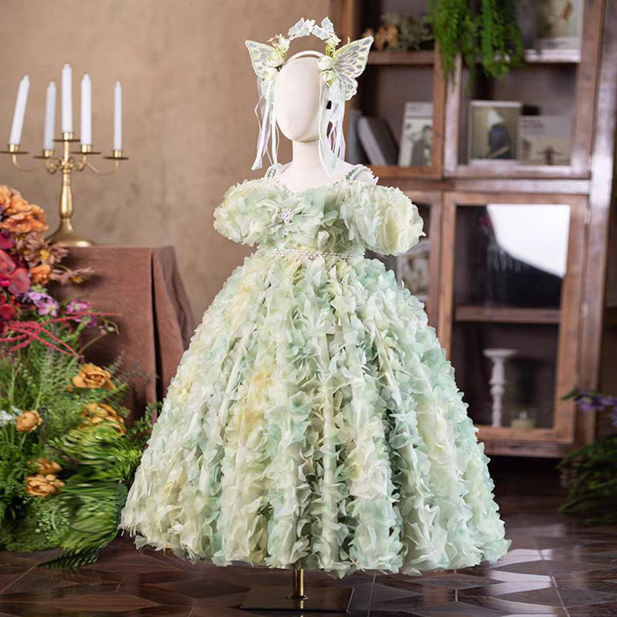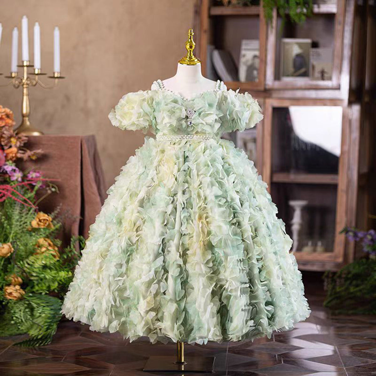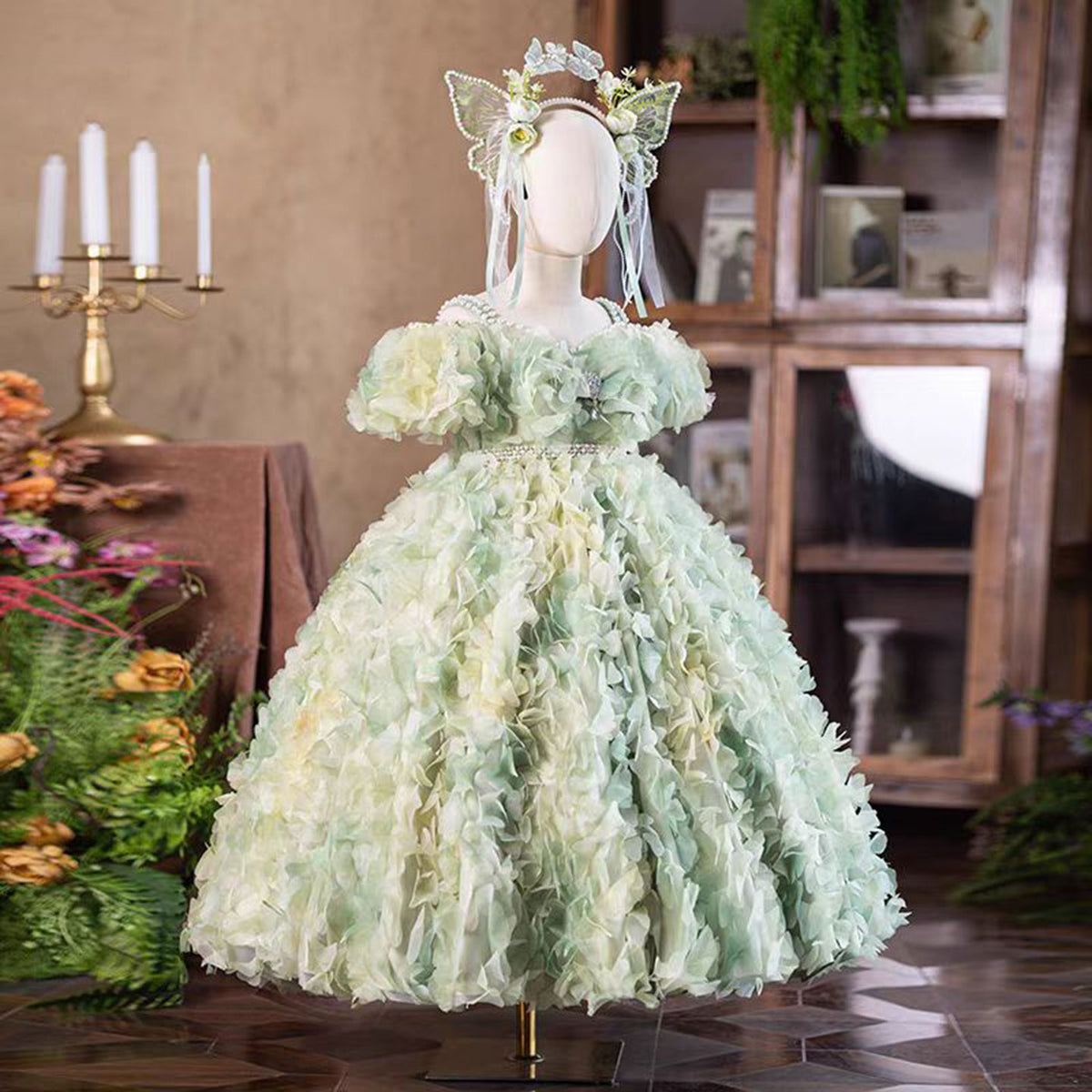 Gorgeous Flower-adorned Flower Girl Dress With Headdress Green J289