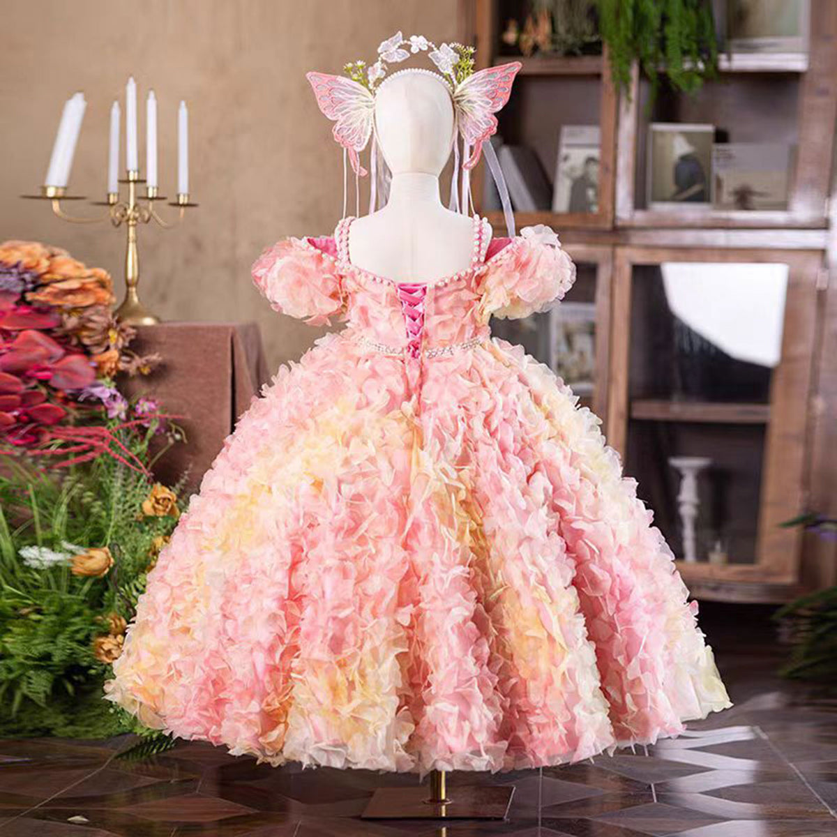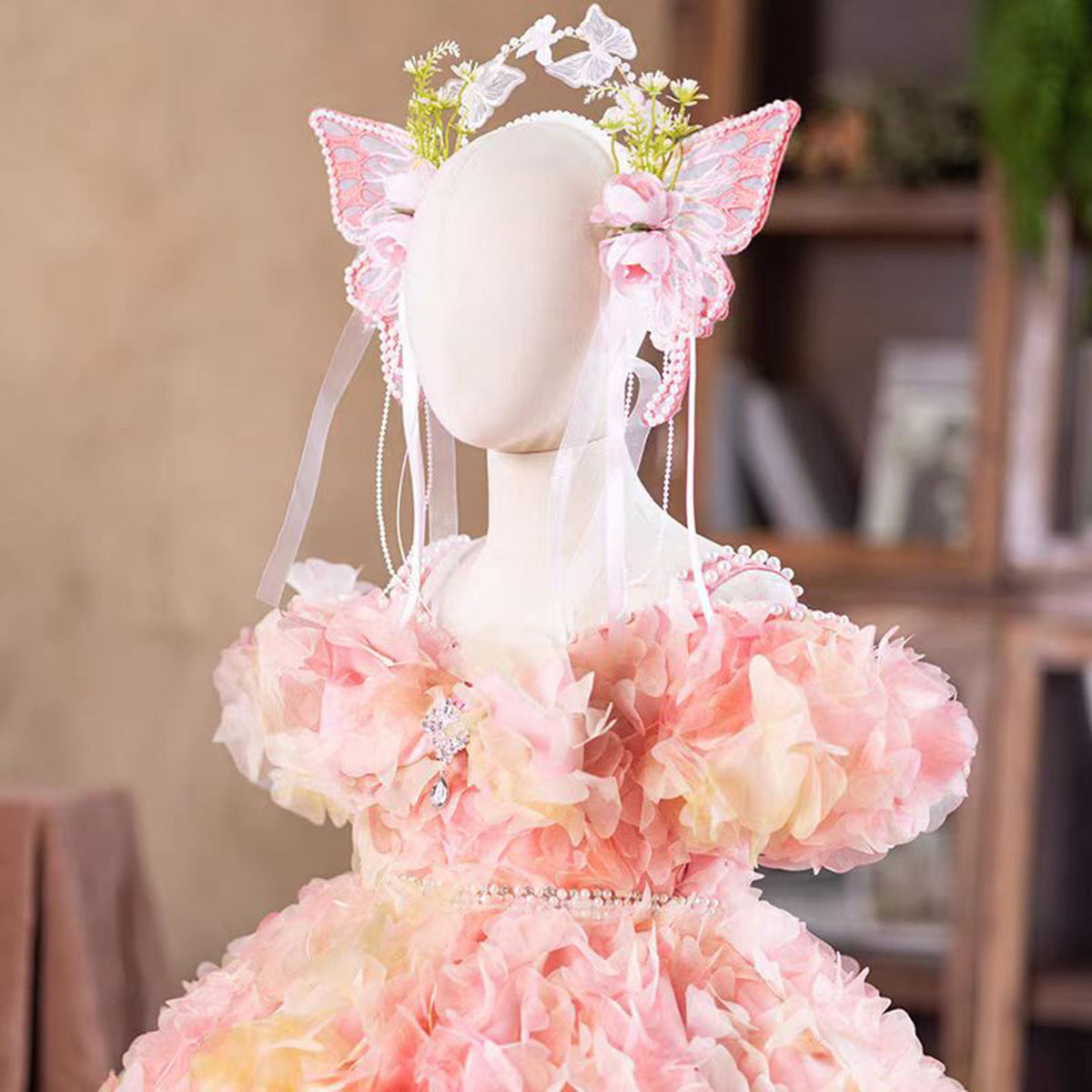 The Jill Gorgeous Flower-adorned Green Girl Dress With Headdress features a beautiful and intricate flower design, adding a touch of elegance to any occasion. The matching headdress completes the look, making it a perfect choice for flower girls at weddings or other special events. Made with high-quality materials, this dress is as durable as it is stunning.