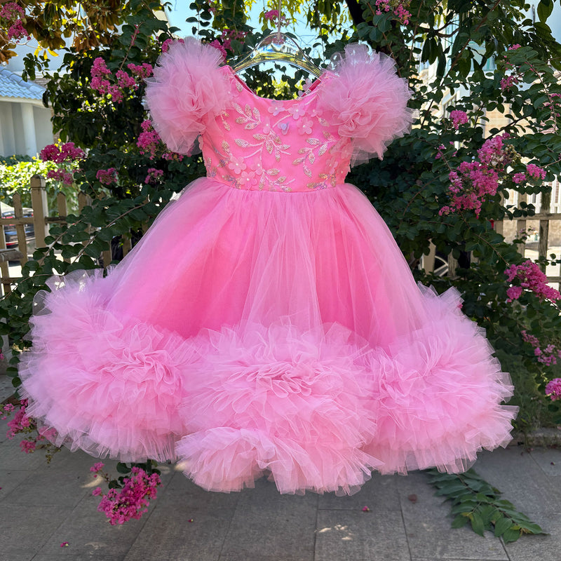 Pink Flower Girl Dress 1st Toddler Wedding Birthday Holiday J750