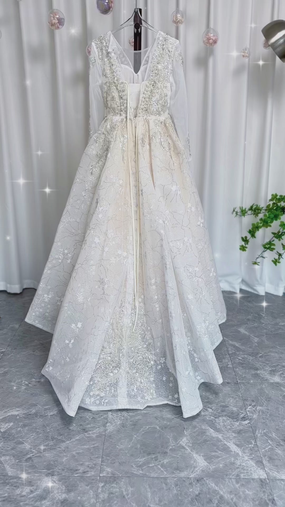 Luxury Champagne Girl Dress Beaded Pearls Dubai Kids Princess J046