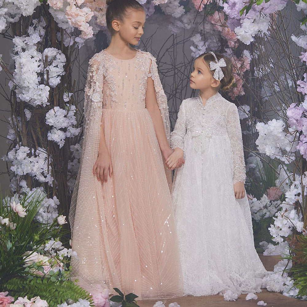 Expertly crafted, the Jill Wish Luxury Pearl Arabic Girl Dress offers elegance and sophistication. Featuring delicate applique and intricate beading, this dress is perfect for weddings, birthdays, and communion parties. With a luxurious cape and princess silhouette, your little girl will feel like a true princess in this stunning gown. Order now and make her special day even more memorable