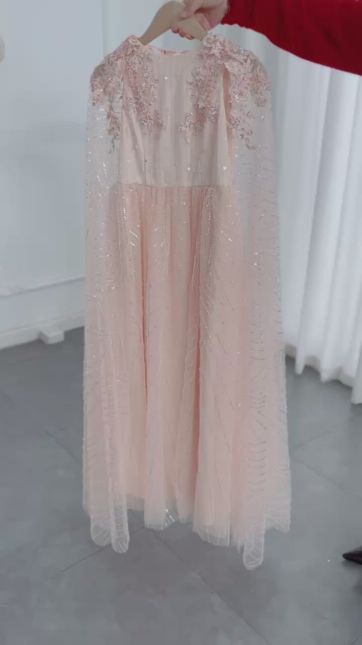 Luxury Pearl Arabic Girl Dress Applique Beaded with Cape Princess J071