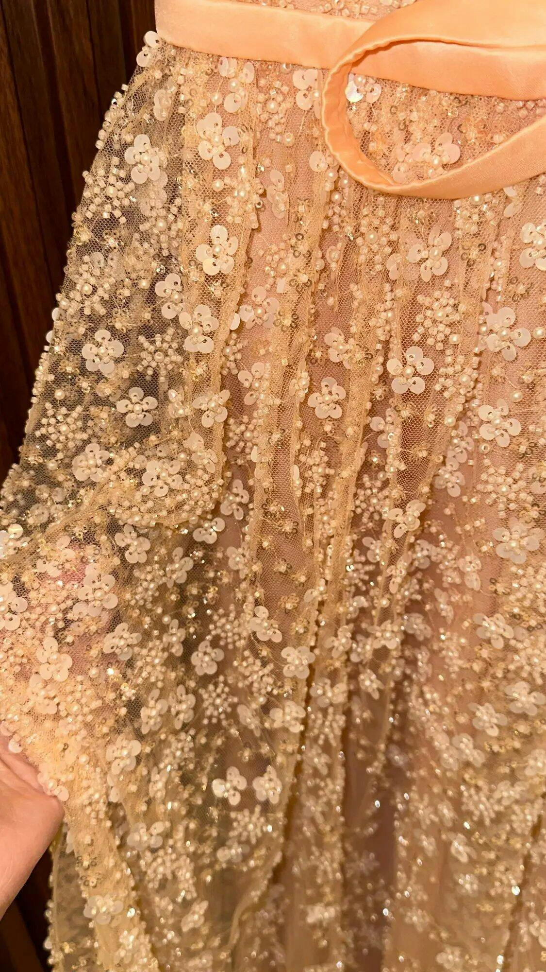 Peach Embroidered Gown with Bow Beaded Arabic Wedding Dress SS304