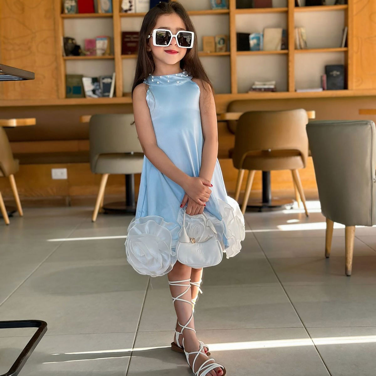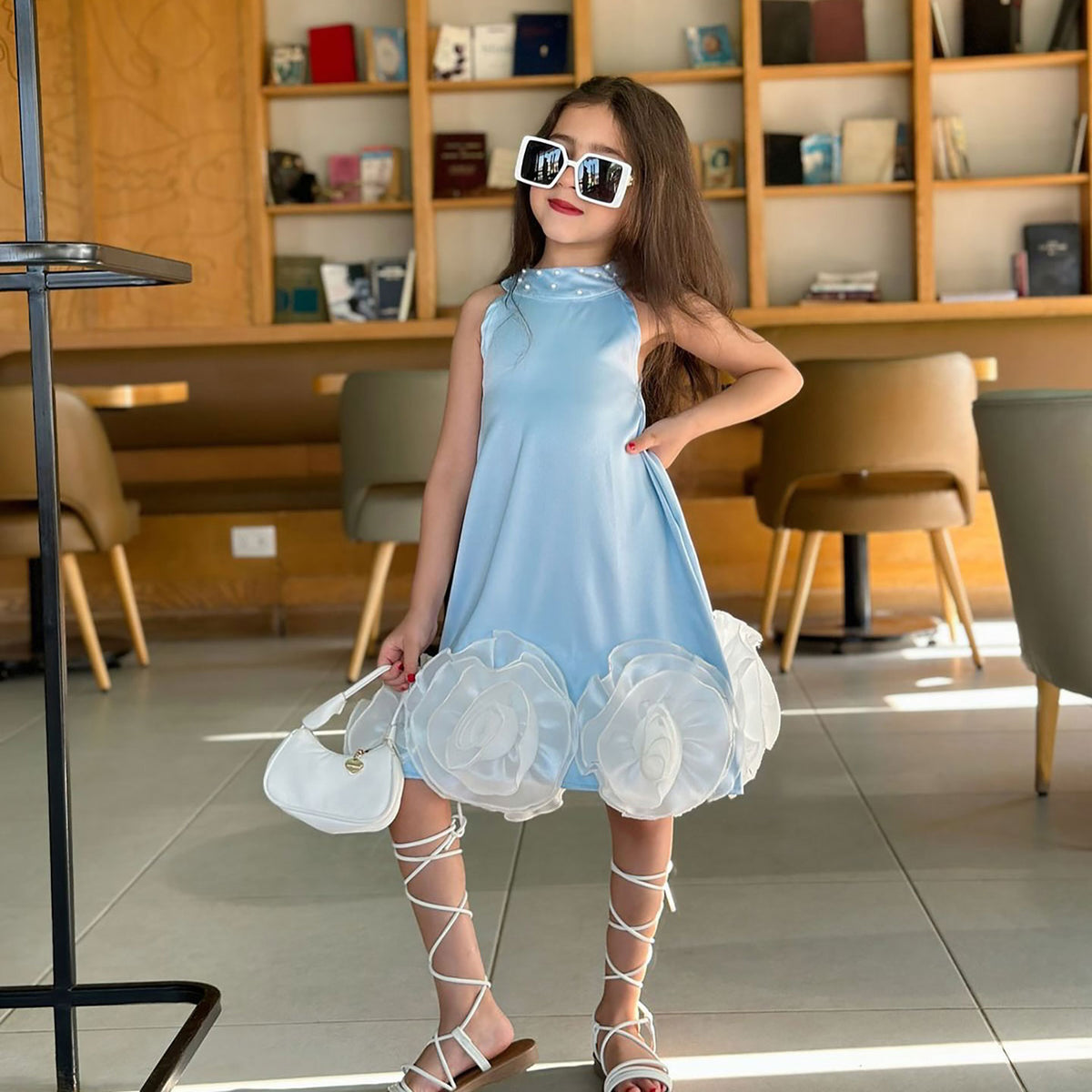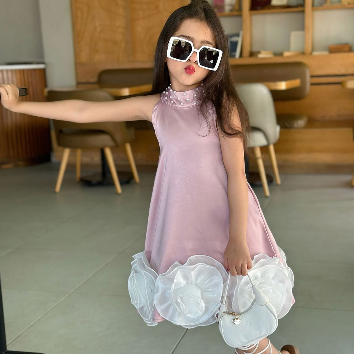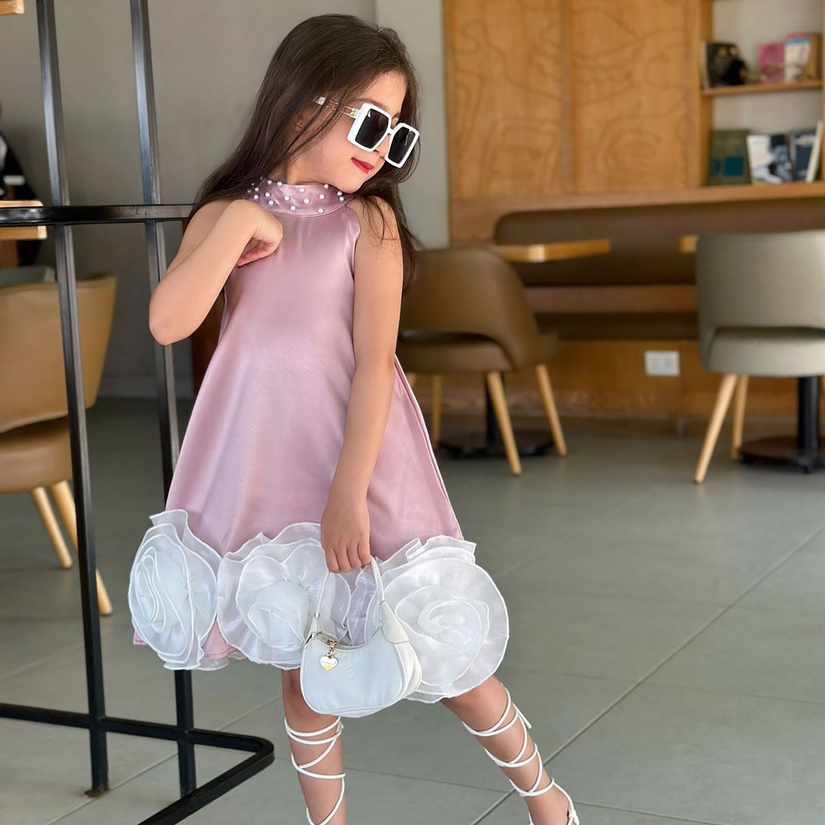 Pink Halter Neck Pearl Princess Flower Girl Dress D105