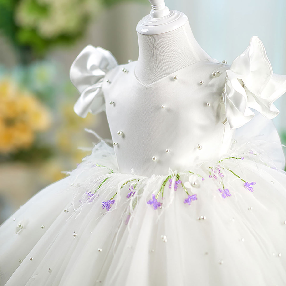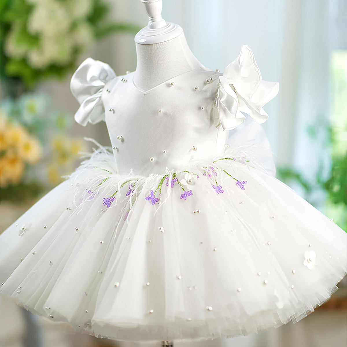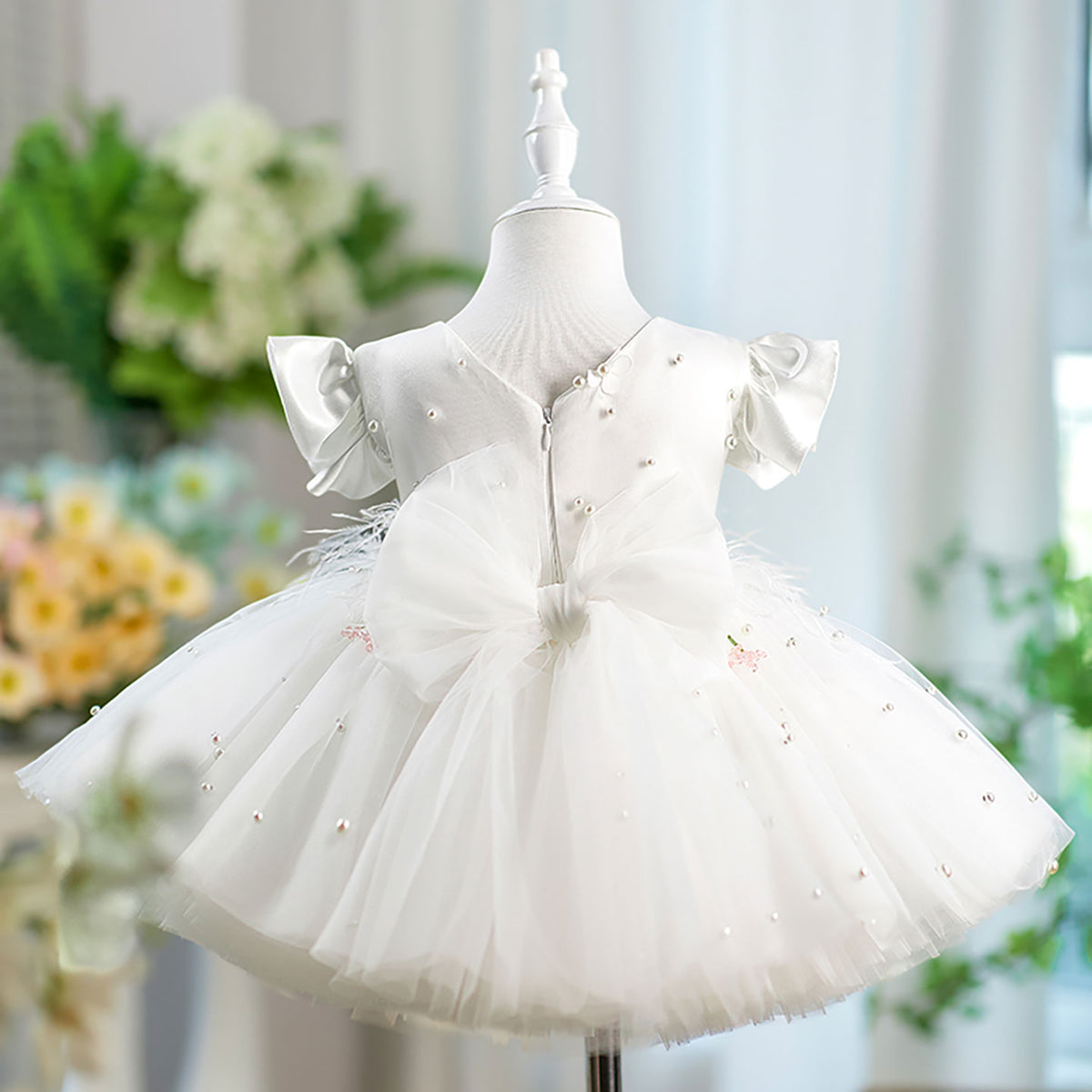 Elevate your flower girl's ensemble with the Jill Satin Top Tulle dress. Featuring a luxurious satin bodice complemented by delicate tulle short sleeves and a charming bow detail. The perfect blend of elegance and youthful charm, this D067 design ensures she'll look picture-perfect for the special occasion while maintaining comfort throughout the celebration.