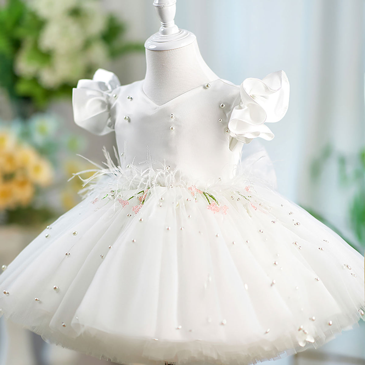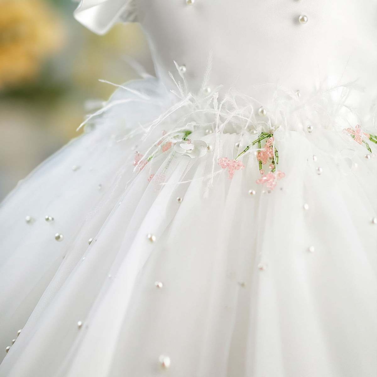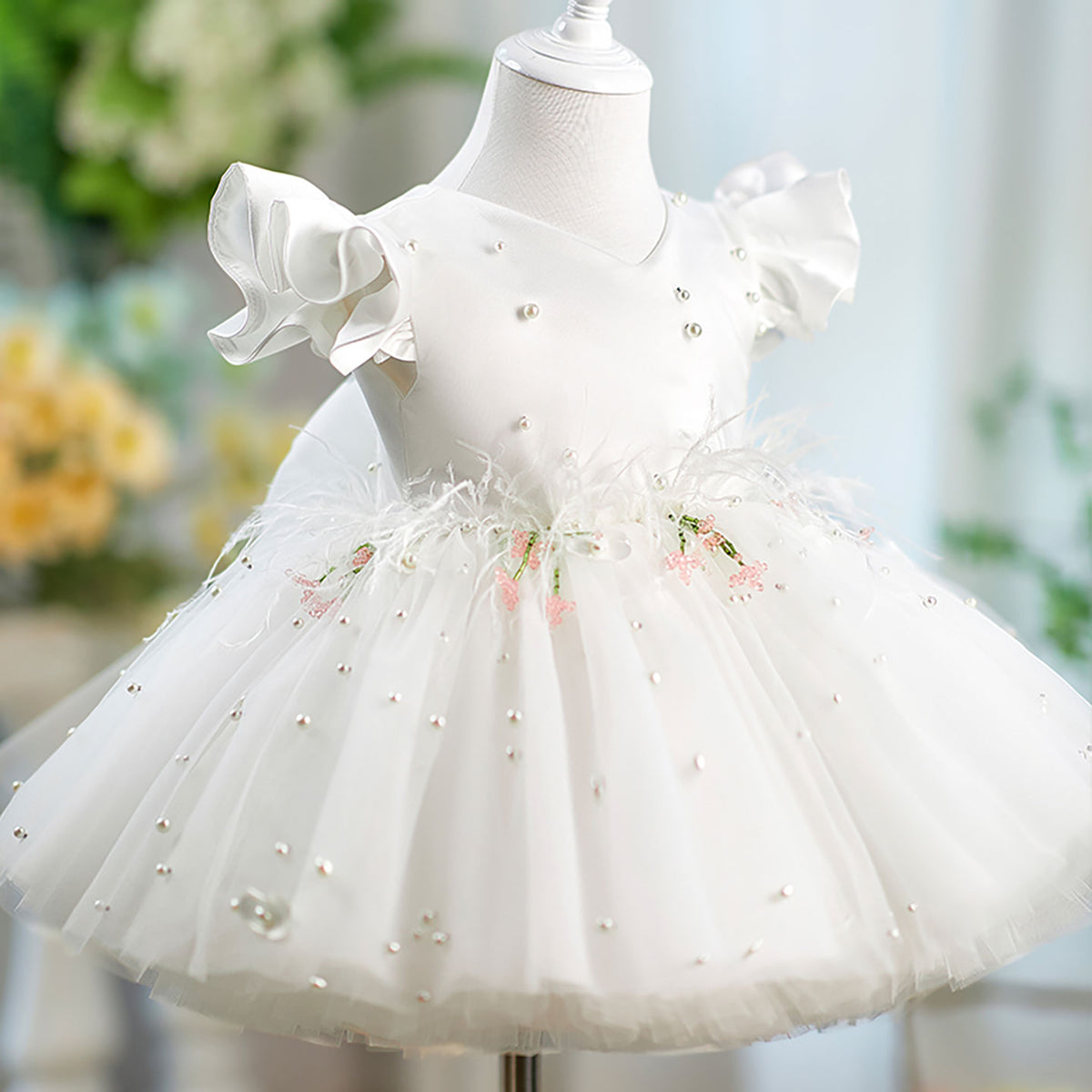 Elevate your flower girl's ensemble with the Jill Satin Top Tulle dress. Featuring a luxurious satin bodice complemented by delicate tulle short sleeves and a charming bow detail. The perfect blend of elegance and youthful charm, this D067 design ensures she'll look picture-perfect for the special occasion while maintaining comfort throughout the celebration.