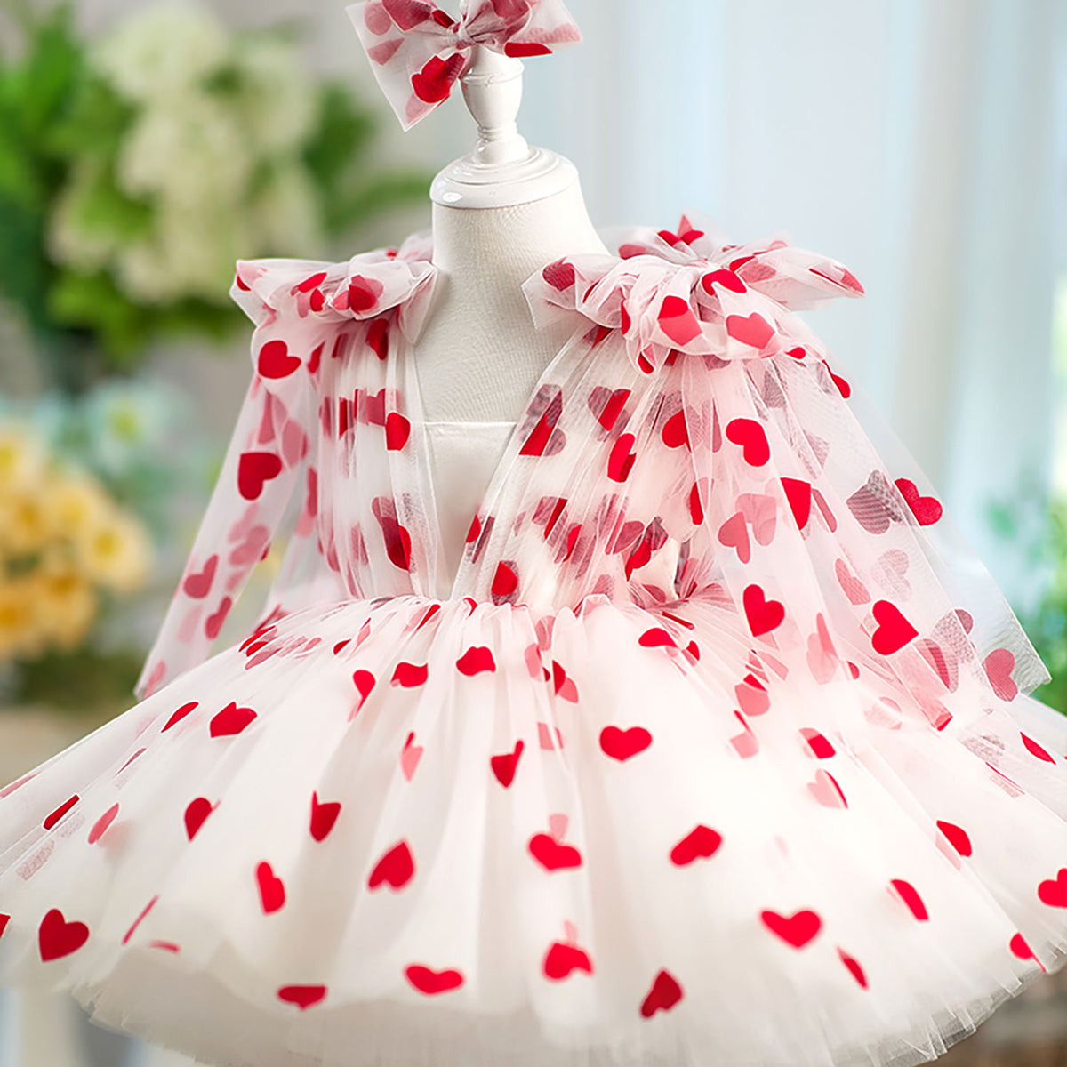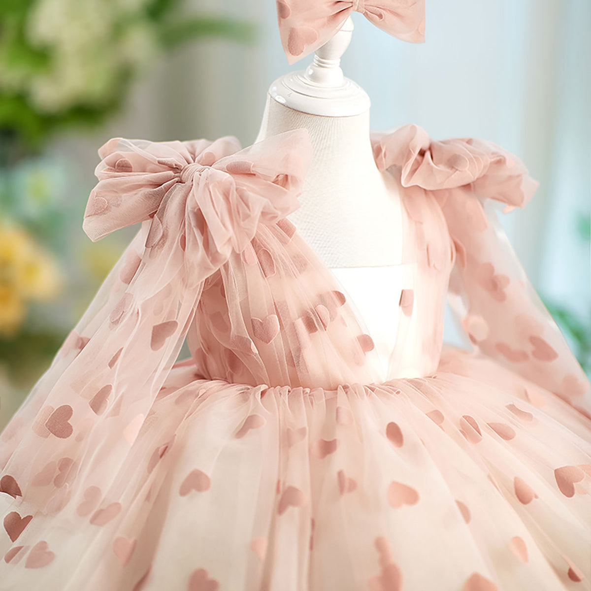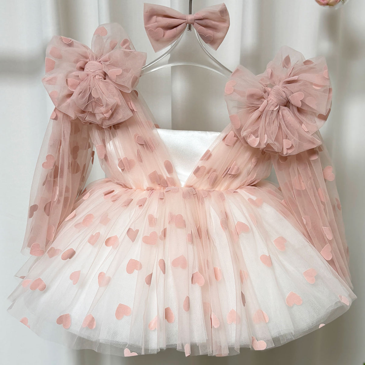 V-Neck Long Sleeves Bowed Tulle Flower Girl Dress D059